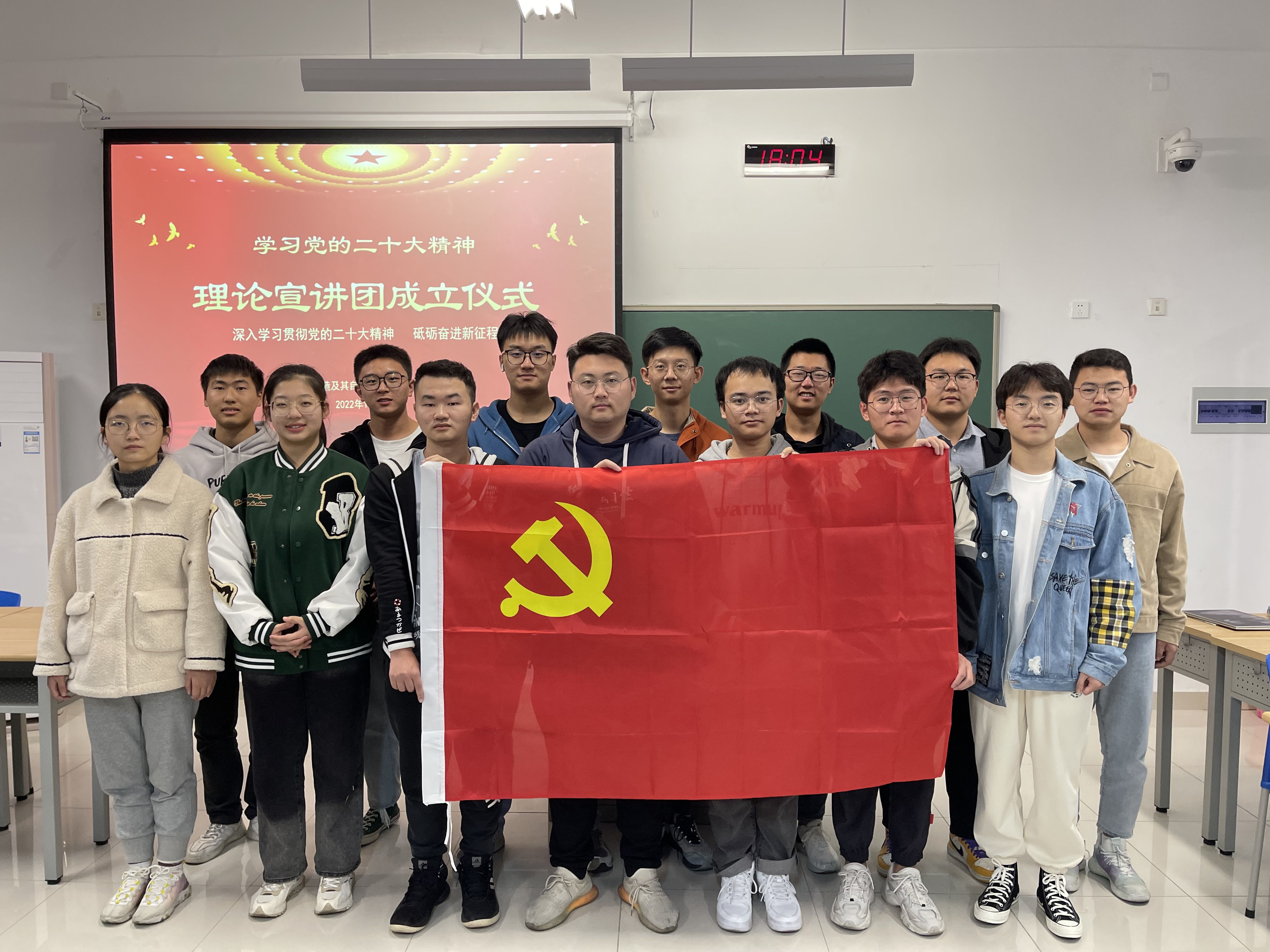 在成团仪式会上,党支部书记李福来同志鼓励大家发挥高昂的工作热情,积极投身于宣讲活动中,把党的二十大精神传播到校园每一个角落,并向大家提出以下要求与建议。首先是要加强理论学习,提升自身水平。宣讲团成员要深入学习党的二十大精神、最新的《中国共产党章程》和习近平新时代中国特色社会主义思想理论,紧跟时代发展潮流,在学生中阐释最新理论、凝聚思想共识、激扬奋进精神。其次是要丰富宣讲形式,确保发挥实效。根据宣讲的内容及宣讲的对象,可以深入课堂、宿舍、操场举办活动,宣讲的内容要贴近时事、贴近生活、贴近学生,活动形式可以主题演讲、沙龙交流、社会实践,最终要让理论走入学生内心产生思想共鸣。最后是要发挥模范引领作用,形成思政育人品牌。宣讲团成员是学生党员、是优秀学生代表,作为宣讲团成员要主动关注时事动态,成为学生思政引领的先锋与模范,思想积极向上、品质素质过硬、行动坚决靠前,做好理论宣讲引领,努力将党的二十大精神理论宣讲团树立为学院特色品牌。