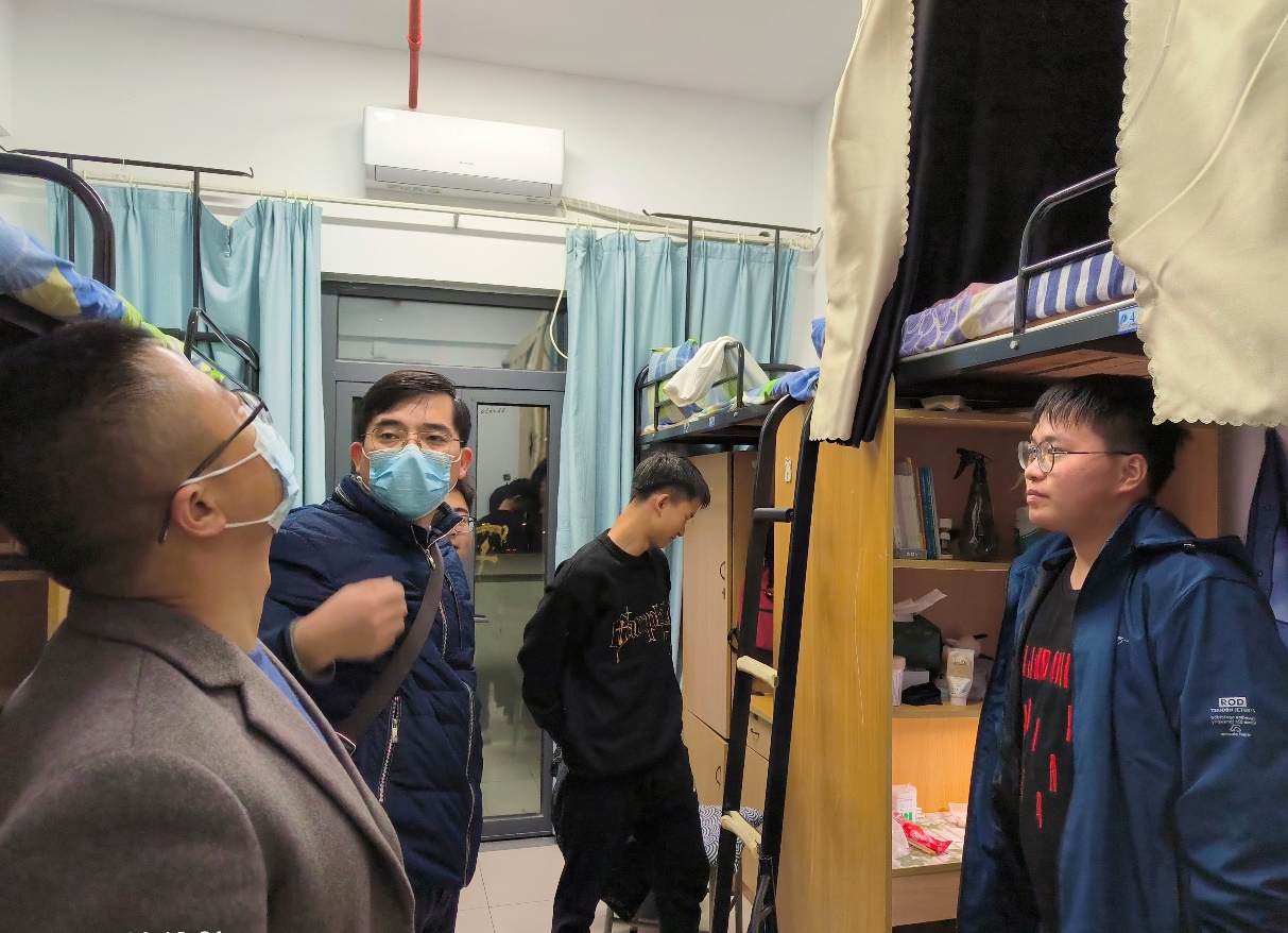 走访过程中,浪live 党委书记翟纯纯与同学们进行了深入交流,详细了解了大家的学习状态、近期生活状况以及临近期末考试的复习安排和心理状态,细致地检查了学生宿舍各方各面的卫生情况,督促同学们做到不使用大功率电器,人走断电,消除可能引发宿舍安全问题的各种隐患,叮嘱同学们严格遵守学校疫情防控要求,做好临近期末的功课复习和心理调整工作,做好自我管理、自我监督。与此同时,翟书记仔细询问了同学们关于对学校疫情防控政策和相关工作的反馈情况。翟书记强调,思想是本,行动是形,本正则形立。以思想自觉引领行动自觉,关键是理解认识学校的各项政策的出发点,掌握精神实质,把握贯穿其中的立场、观点、方法,努力做一名合格的大学生。