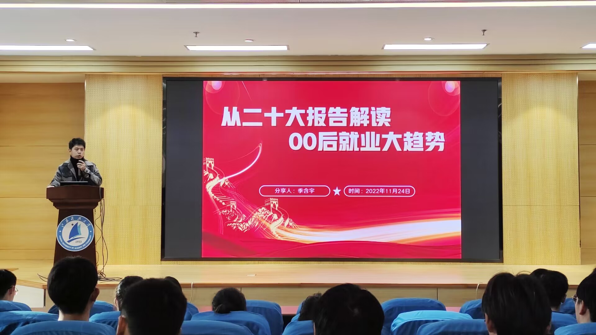 学院就业辅导员季含宇老师召开专题讲座,围绕党的二十大报告中实施就业优先战略,在后疫情时代的背景下,结合当前就业形势,与同学们分析当前00后就业趋势。指导00后如何及时掌握就业信息,对比分析企业优势,面对新时代的就业挑战采取应对措施。