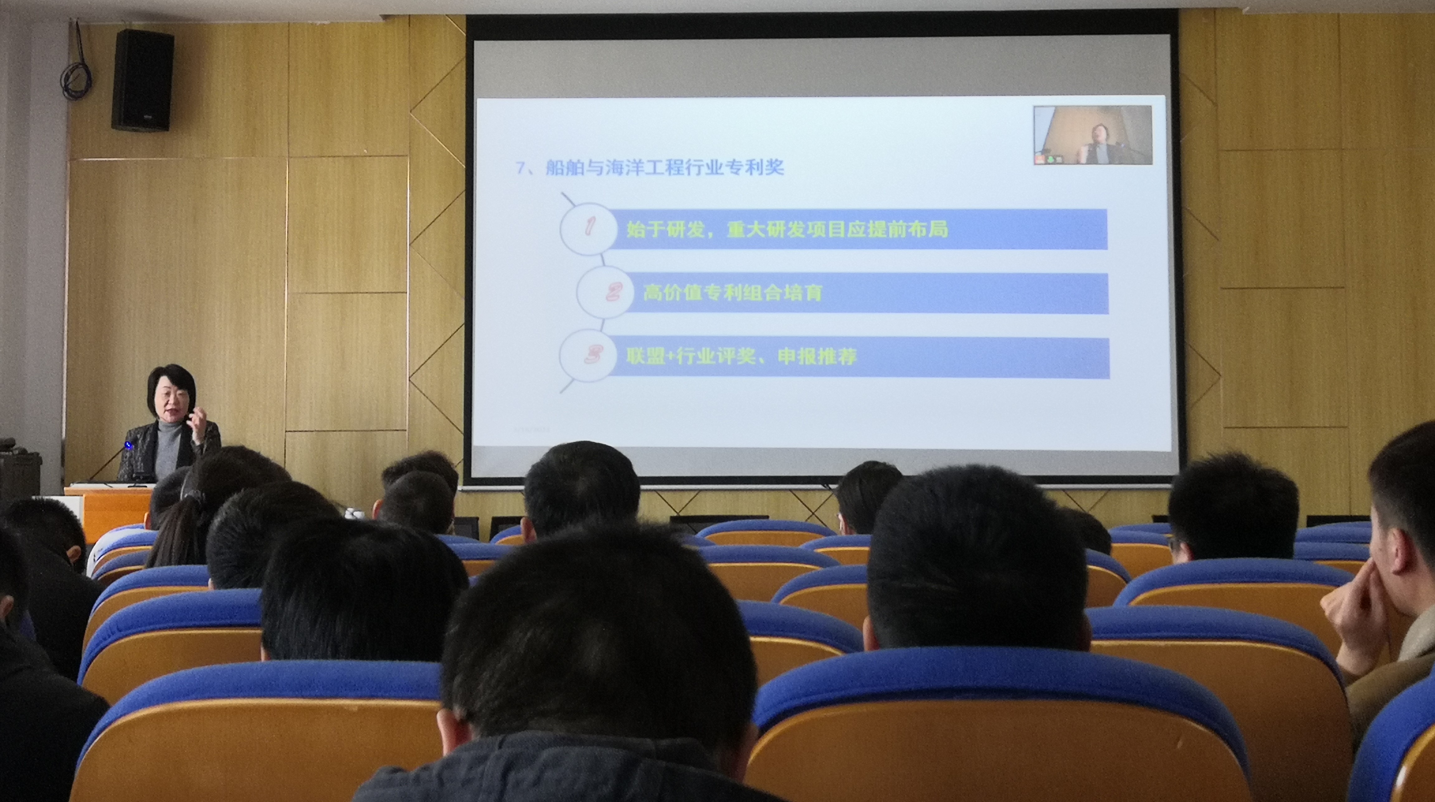 吴教授以船舶行业专利奖和中国专利奖的培育与申报方法为例,围绕近几年专利奖的申报趋势、政策变化、评审流程、申报书撰写等注意事项进行详细的讲解。同时对如何开展高价值专利培育、申请、保护、布局等方面进行了详细剖析。吴教授表示,专利奖的申报需要具备创新性、实用性、经济性等方面的特点,同时要注意专利的布局和侵权问题,以确保专利的高价值。