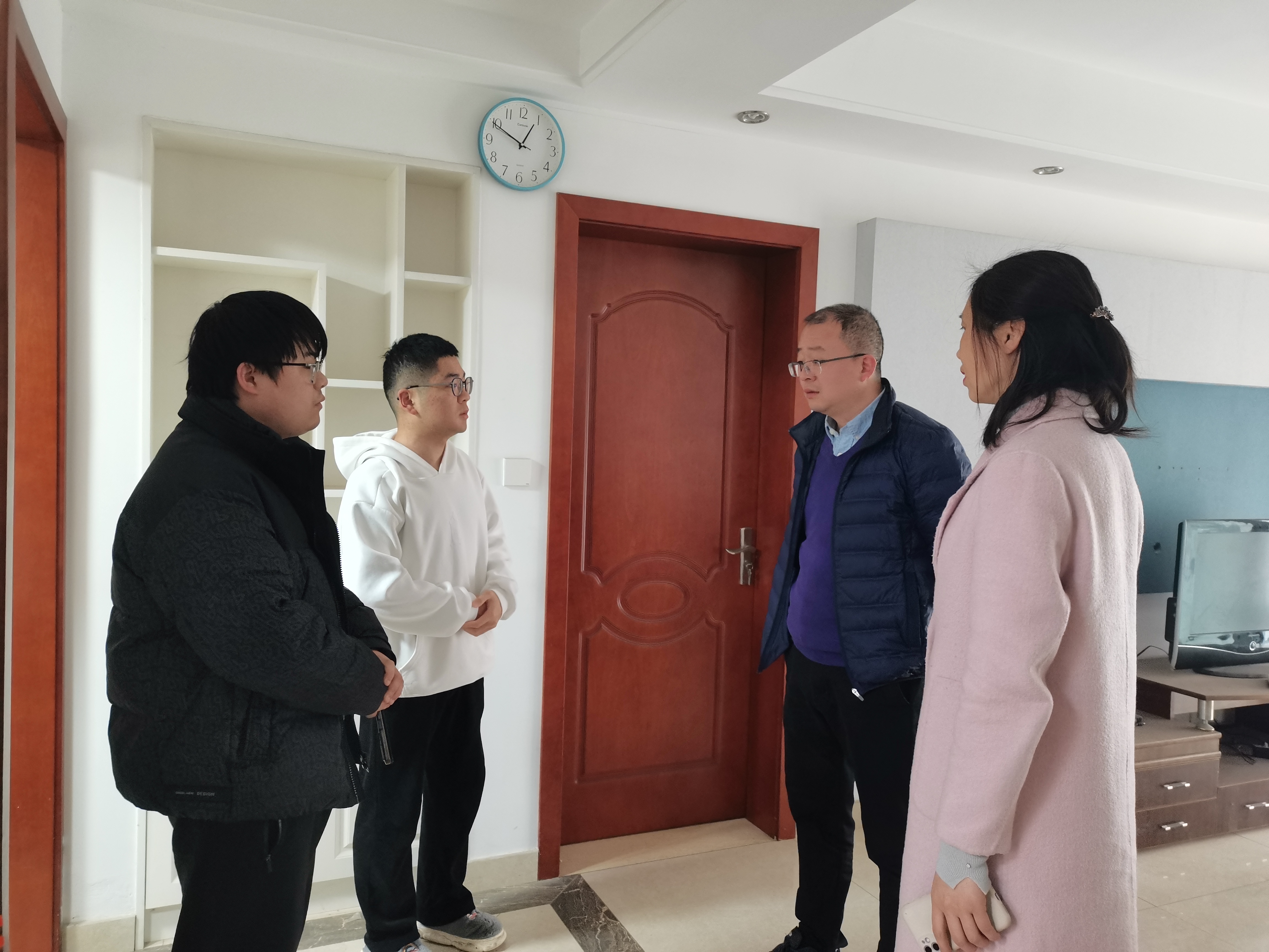 党委副书记谭海波、辅导员吴堂凤和心理辅导员谭静对校外住宿学生进行了走访慰问。