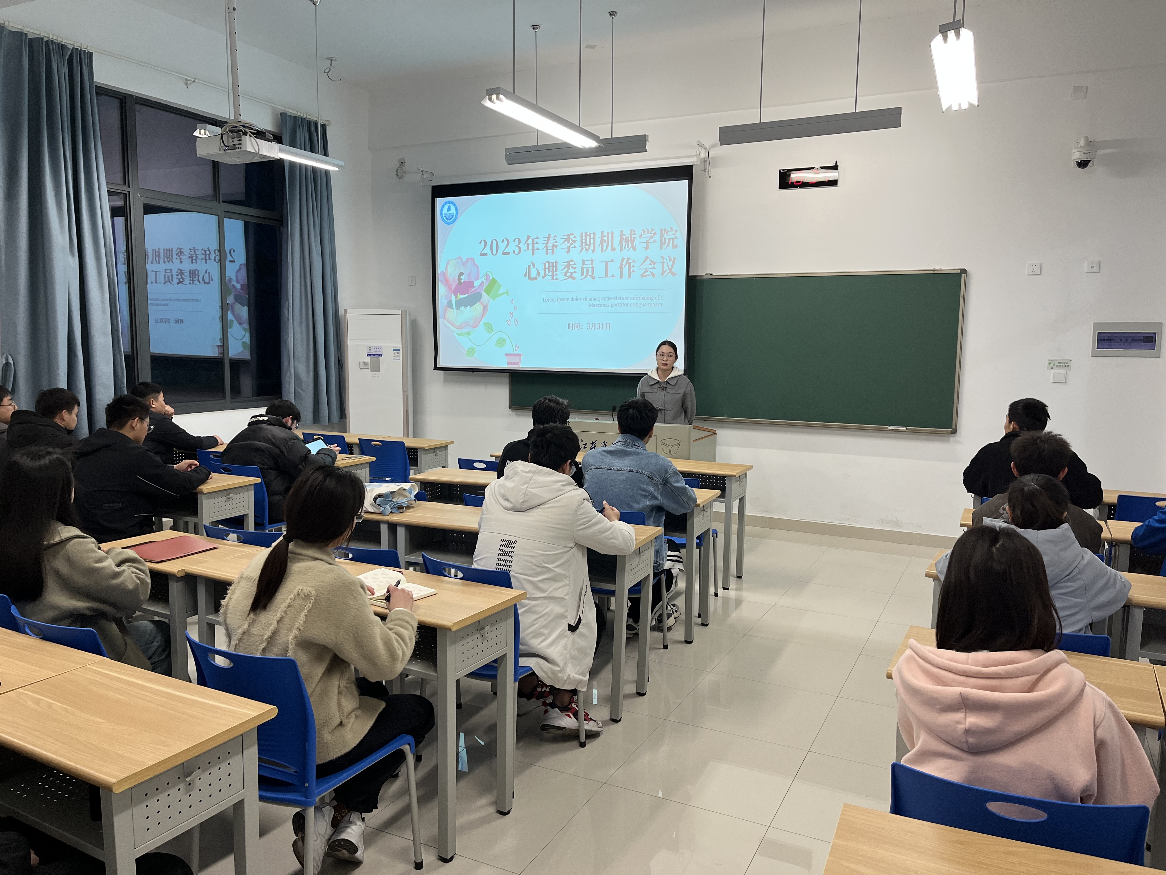为更好地把握本科生春季期心理动态,有序推进学院心理健康教育工作,充分发挥心理委员的桥梁纽带作用,机械工程学院于3月31下午日在经世楼104召开2023年春季学期心理委员工作会议。会议由心理辅导员谭静主持,机械工程学院全体心理委员参加会议。