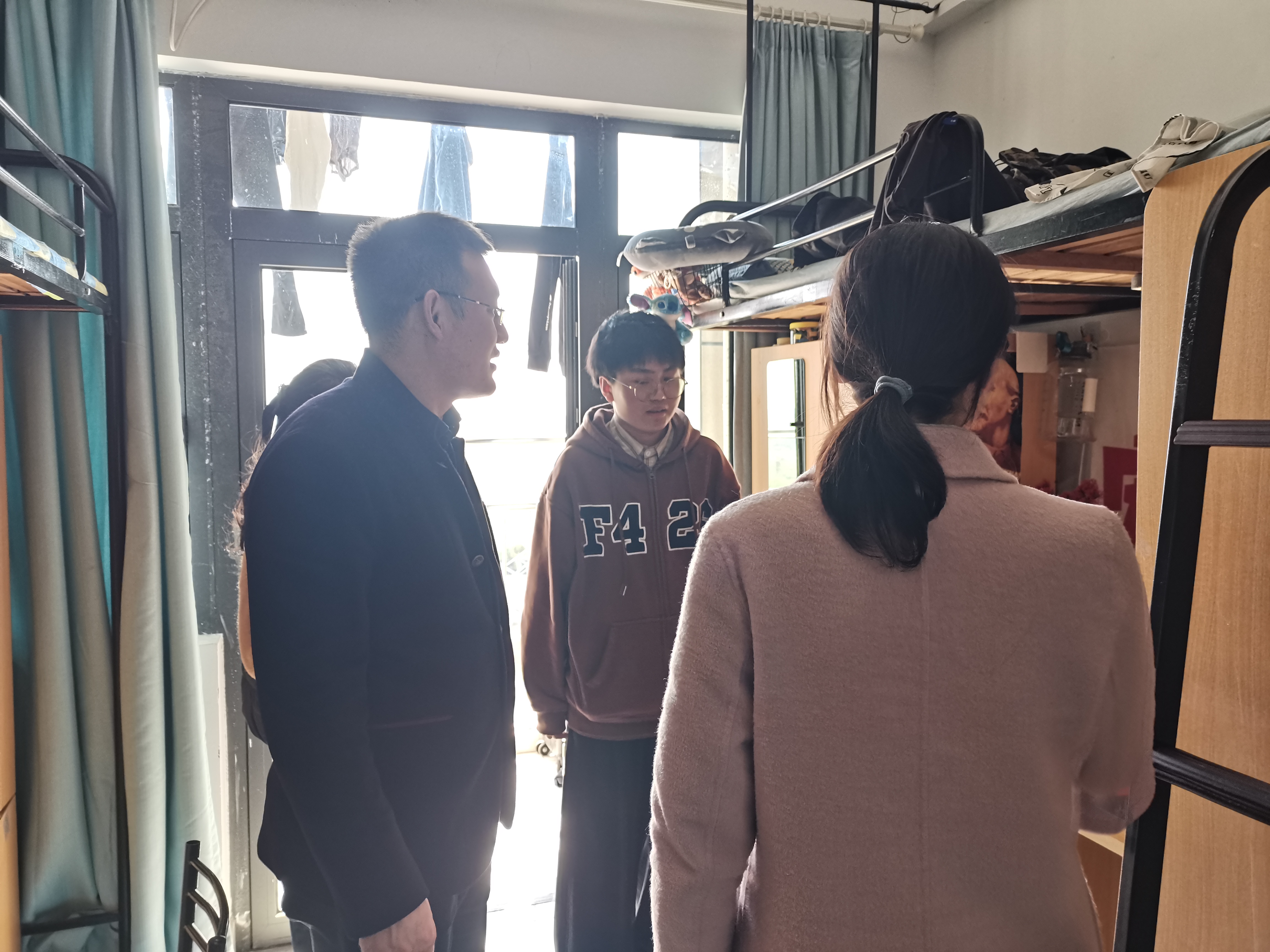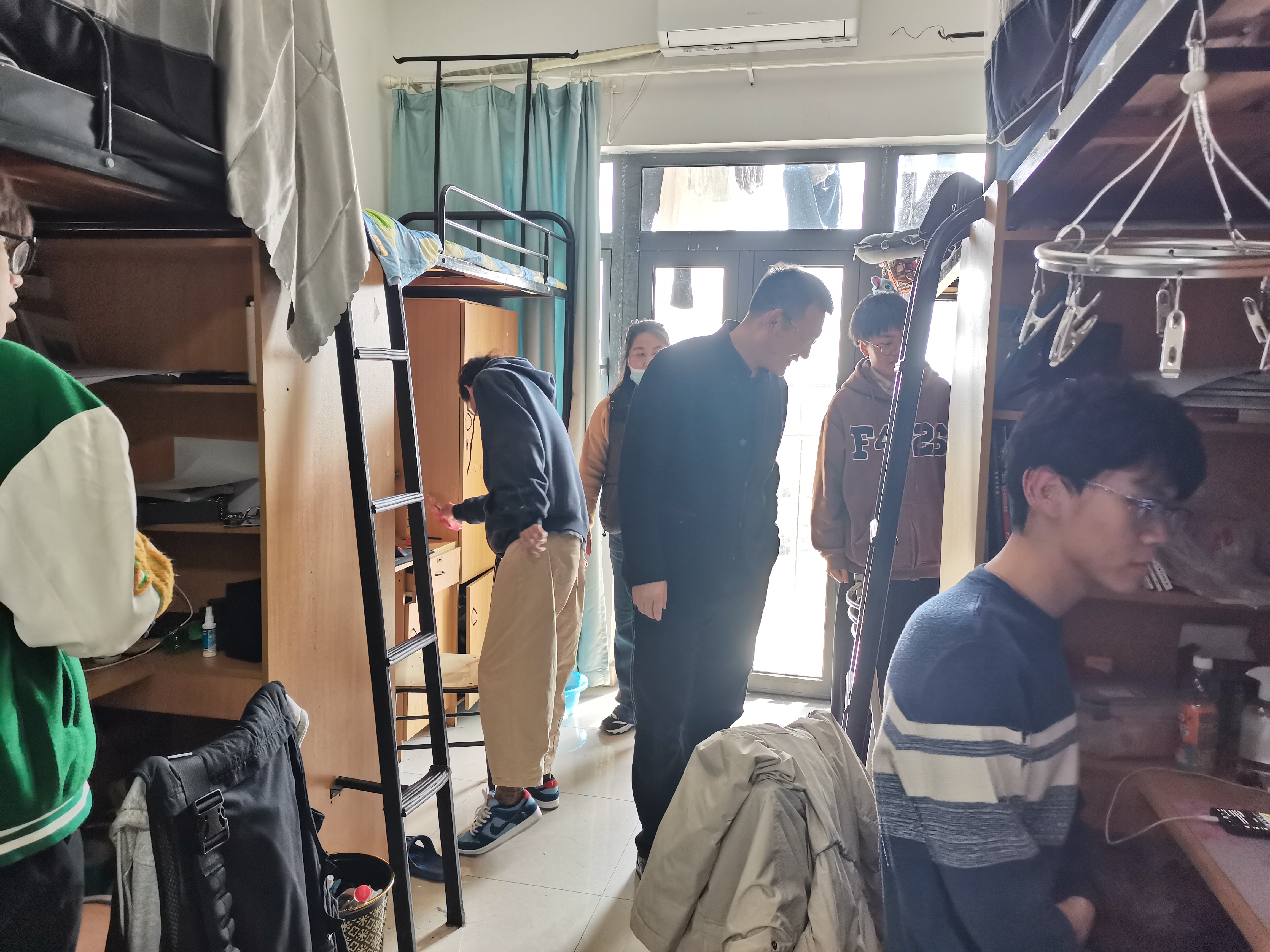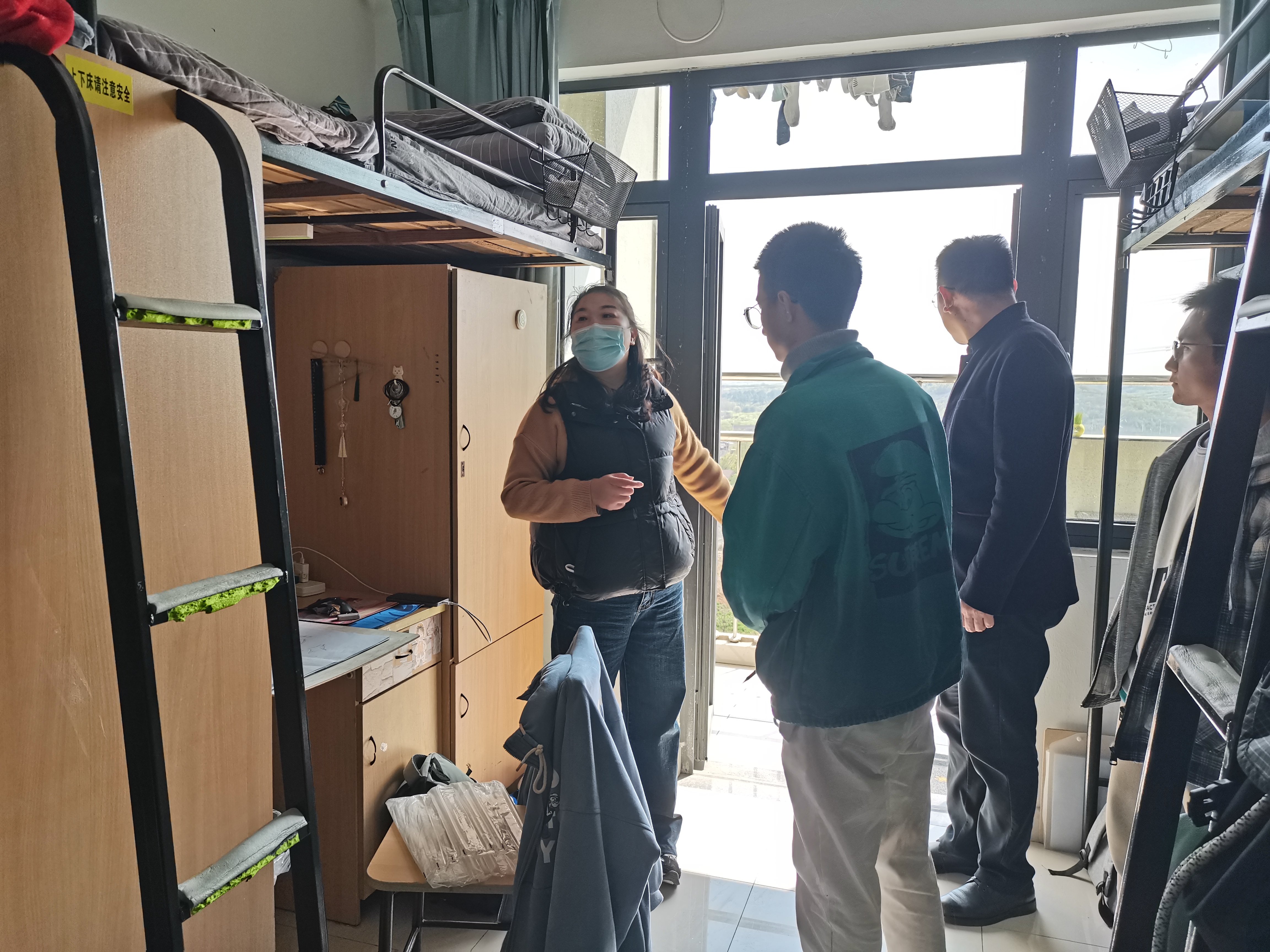 为做好学生宿舍安全教育,加强学生宿舍安全隐患排查,共同营造安全、文明、卫生的宿舍环境,积极推动平安校园的创建,4月7日下午,浪live 辅导员李文达、吴堂凤、李福来、谭静一同巡查学生宿舍,从思想动态、专业学习、宿舍安全、心理健康、生活情况等方面与同学们进行深入交流。同时邀请了6号组团安全责任人的组长张娣参与此次巡查,指导学生做好宿舍卫生与安全保障工作。