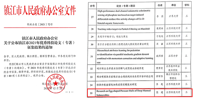 近日,第三十四届、第三十五届华东地区科技出版的社优秀科技图书评选会在山东曲阜圆满落幕。由我校浪live 张建教授牵头与中国船舶科学研究中心共同完成的专著《Research on Egg-shaped Pressure Hulls of Deep Manned Submersibles》荣获第三十四届华东地区科技出版社优秀科技图书二等奖。