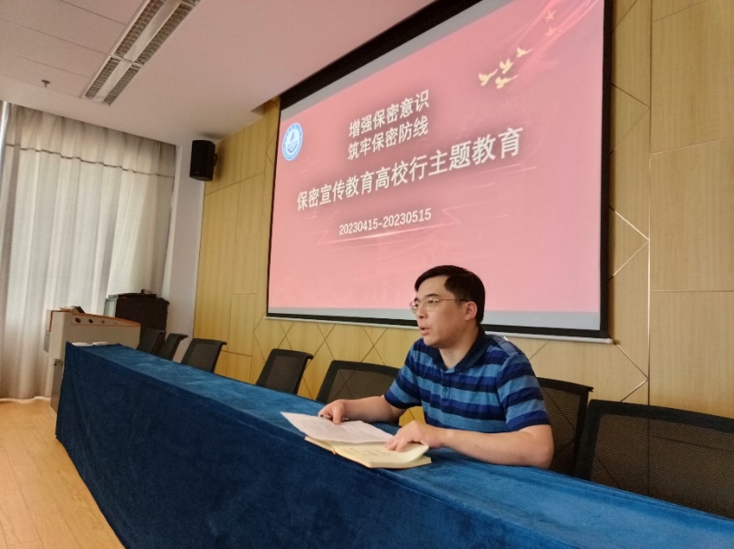 为深入学习宣传贯彻党的二十大精神,加强保密工作宣传教育,强化学院广大师生保密意识和能力,根据上级和学校保密办的安排,浪live 自4月中旬至5月中旬,组织开展了多场以“增强保密意识,筑牢保密防线”为主题的保密宣传教育活动,进一步强化做好新时代新征程保密工作的责任意识和本领能力。浪live 教师和学生代表参加了本次主题教育活动,学院党委书记翟纯纯、副院长(主持工作)张建、副院长李磊参加了本次活动。