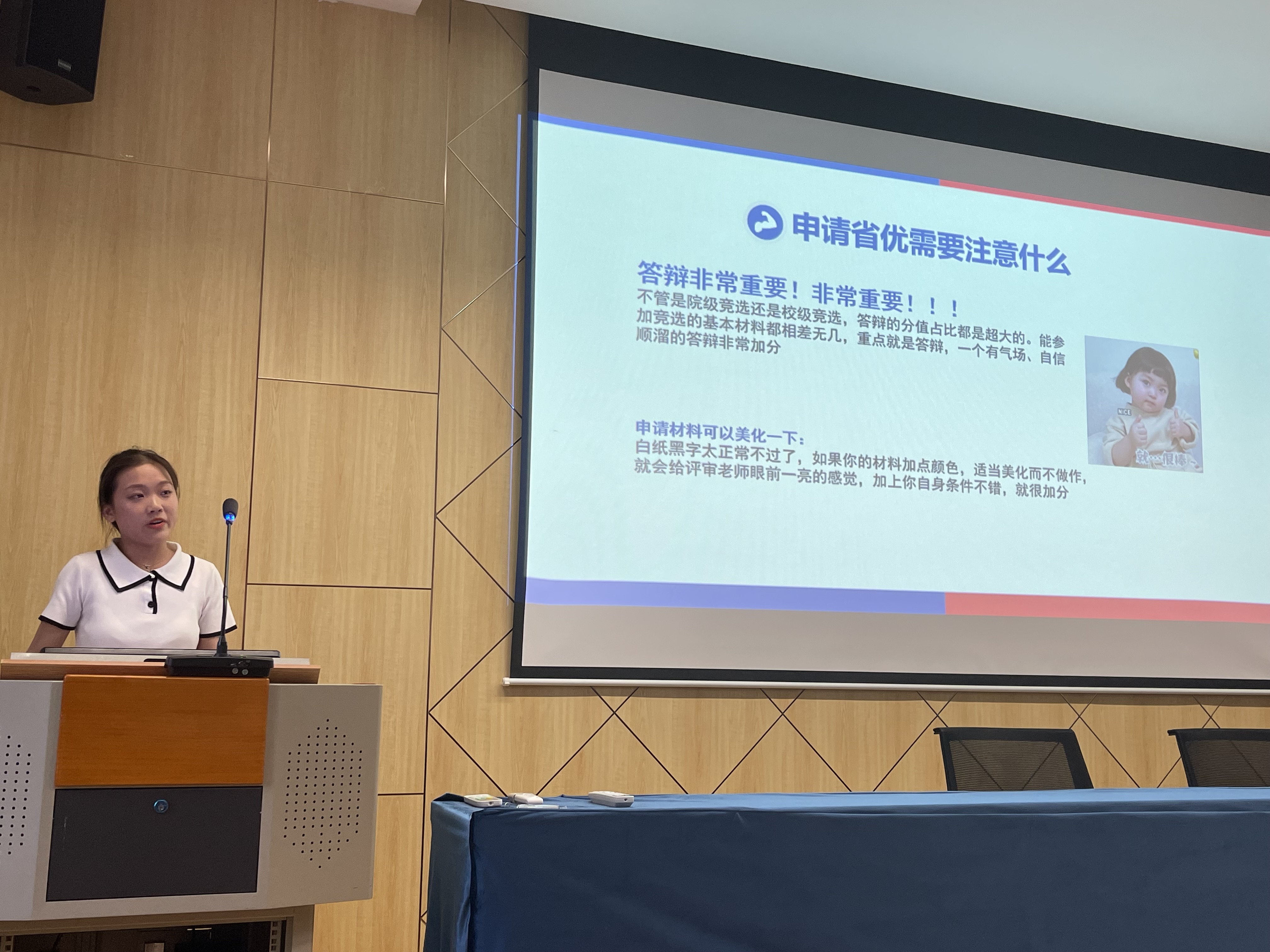 此次共邀请4位2023届省优获得者参与分享,他们围绕大学期间的思想、学习、干部经历、实践、科研竞赛、职业生涯规划、答辩准备等方面的丰富经历、经验感悟进行了交流分享。2019级工业设计专业的赵薇同学主要向大家介绍了她的学习生涯,包括自身的保研旅程,特别强调同学们在规划上要明确未来目标并确定方向,学习上要提高内在驱动力和执行力,同时围绕答辩PPT制作等方面做出详细介绍。2020级智能制造工程专业的朱申奥同学围绕个人的学生干部经历和学习情况展开分享,同时向大家分享如何选择省级三好学生和省级优秀学生干部之间的申报问题,并强调申报的重点。2020级工业设计专业的曹雯静同学则重点介绍了她作为班级班长,一路以来,带领班级开展各项活动,强化班风学风,先后拿下省校级先进班集体荣誉的心路历程。作为与曹雯静同班的熊义同学从身为团支部团支书的角度,介绍了团支部与班级共建过程中的经验,以及与同学们分享在省级先进班集体申报的注意事项。