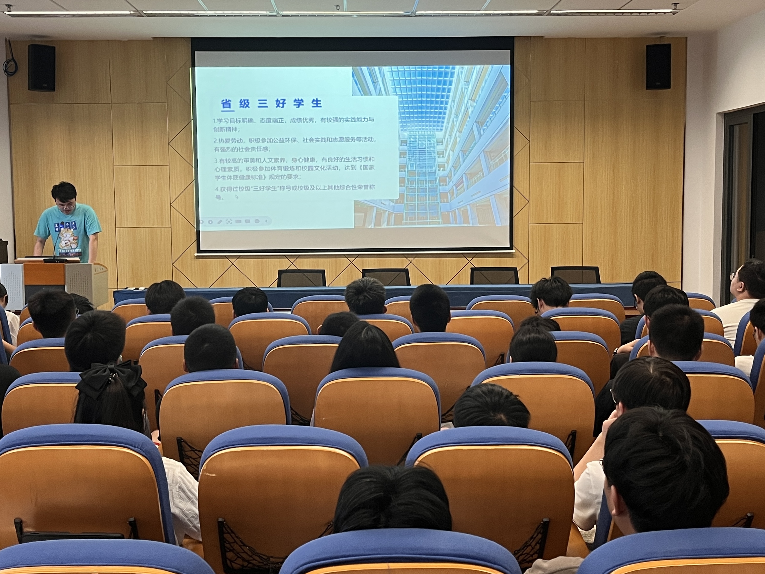 为进一步加强学院学风建设,6月12日,机械工程学院在机械楼426报告厅举行了“见贤思齐争上游,榜样传承促学风”浪live “学风建设年”主题活动之2023年省优获得者经验分享会,会议由学院思政辅导员李福来老师主持,2020级和2021级在校学生代表100余人参加。