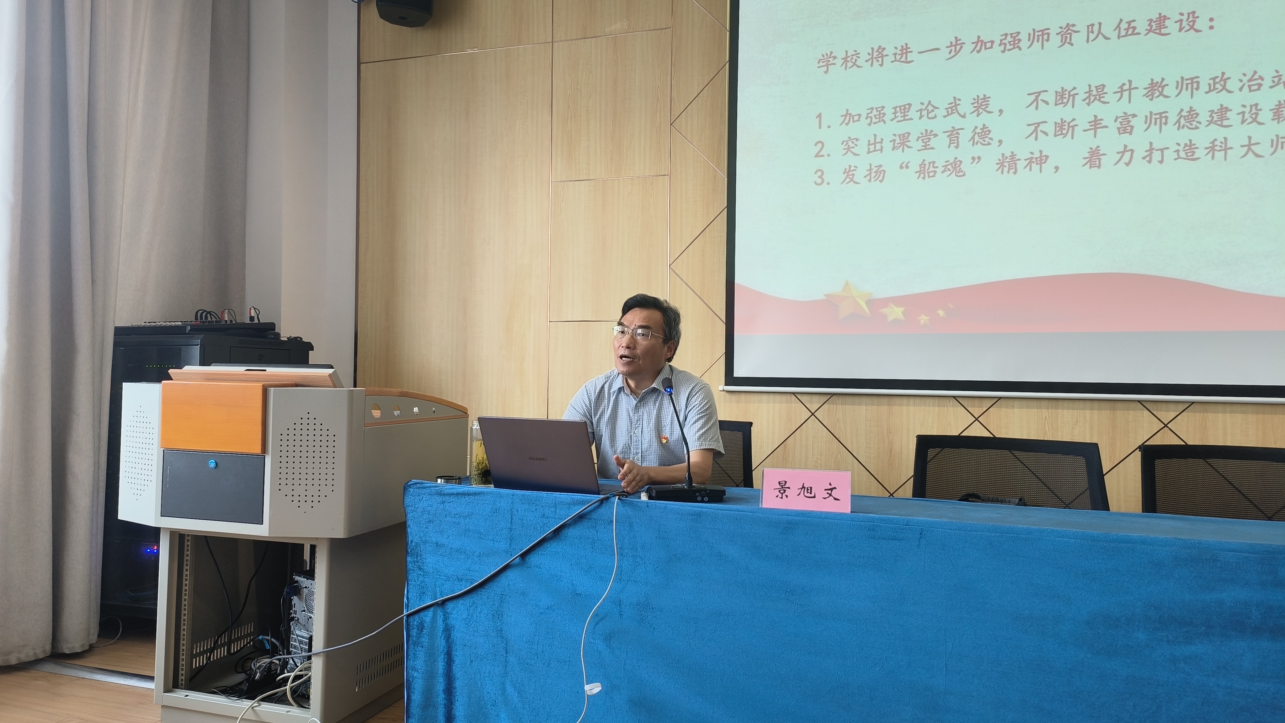 景旭文从中国关于工业化的历史话语权的形成谈起,围绕中国式现代化的科学内涵和重大意义、以高等教育强国建设助力中国式现代化、加强师资队伍建设推动学校高质量发展三个方面展开阐述。他强调,做好高校教师的思想政治教育,加强师德师风和意识形态工作,对于加强党对高校的领导,全面贯彻党的教育方针,坚持社会主义办学方向,培养德智体美劳全面发展、堪当民族复兴大任的社会主义建设者和接班人具有重大而深远的意义。学校将进一步加强师资队伍建设,加强理论武装,不断提升教师政治站位;突出课堂育德,不断丰富师德建设载体;发扬“船魂”精神,着力打造江科大师德品牌。
