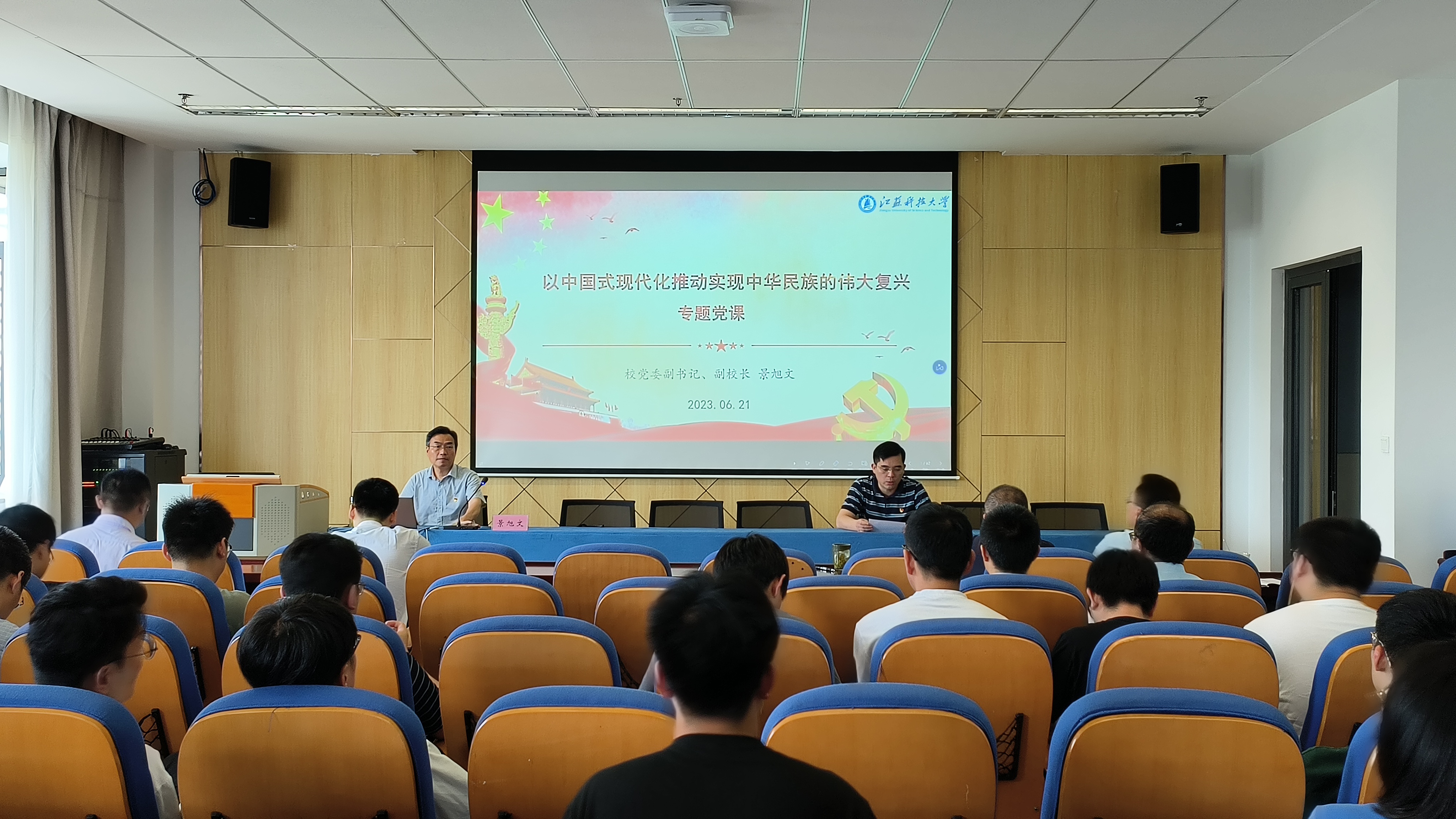 6月21日下午,校党委副书记、副校长景旭文深入浪live 开展主题教育专题党课,党课以“以中国式现代化全面推进中华民族伟大复兴”为中心展开,浪live 全体院领导、机械制造工程系党支部、轮机工程系党支部的教工党员及部分学生党员参会学习。党课由浪live 党委书记翟纯纯主持。