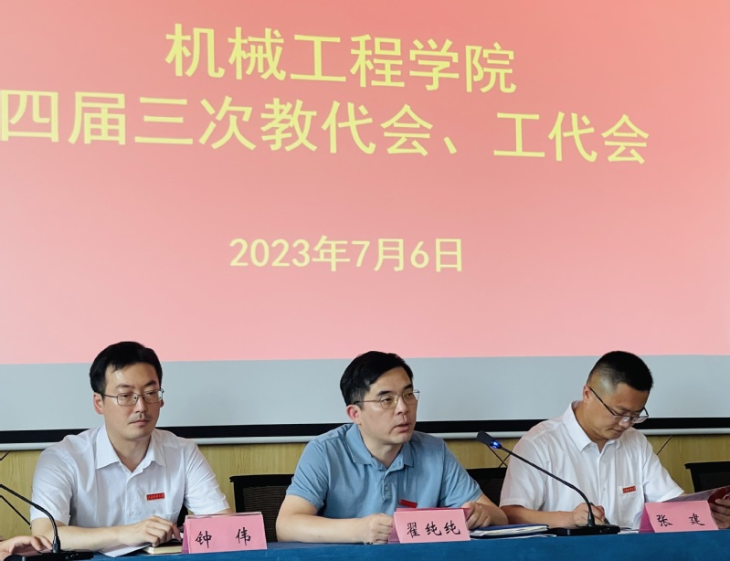 7月6日下午,机械工程学院四届三次教代会、工代会在长山校区机械楼426报告厅举行,本届教师代表共有正式代表59人,参加本次大会代表53人,62名列席人员参加了本次会议。大会听取了学院党委副书记、副院长(主持工作)张建作的院长工作报告,学院党委委员、工会主席王黎辉作的工会工作报告。会议由学院党委副书记谭海波主持。