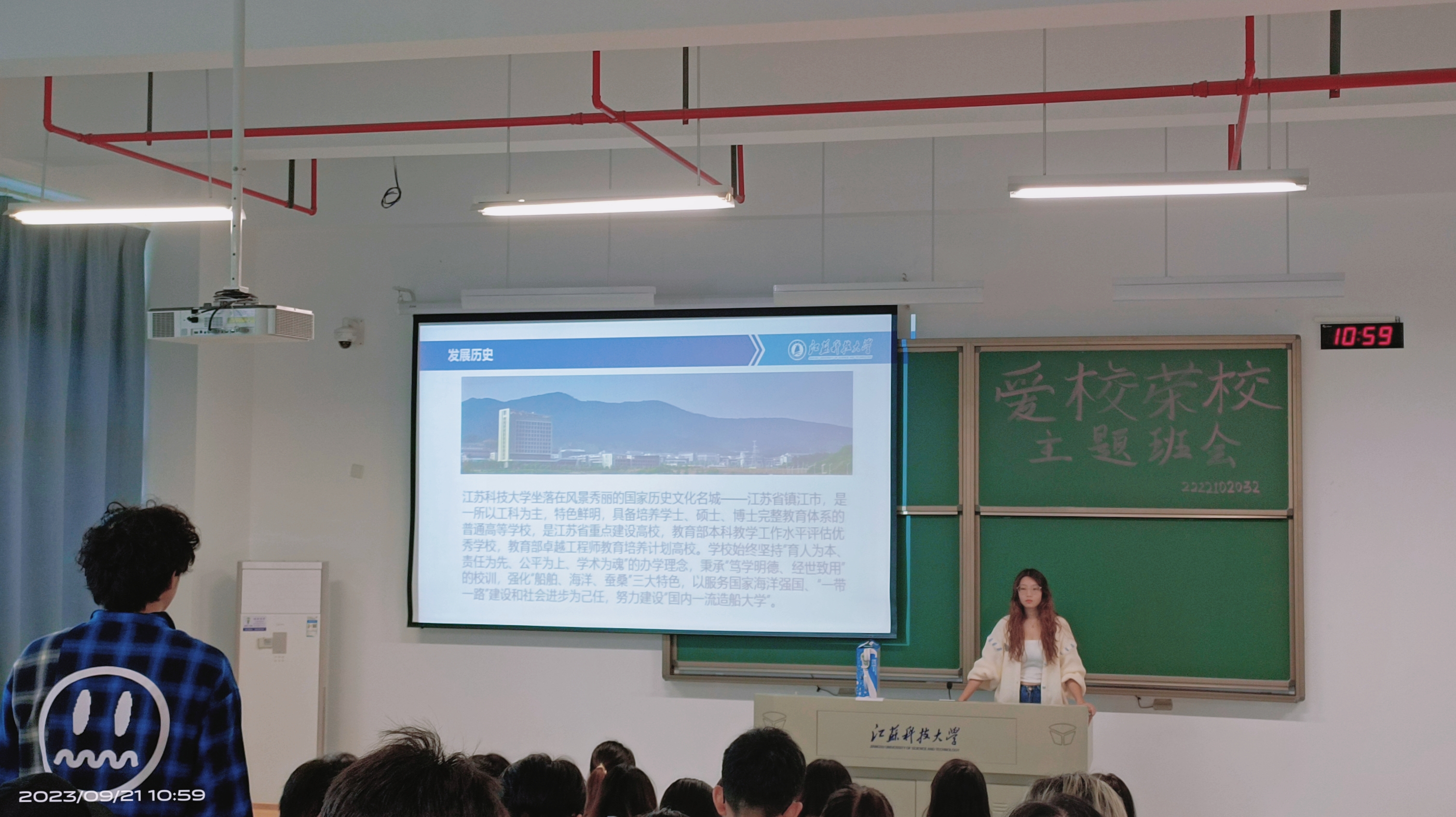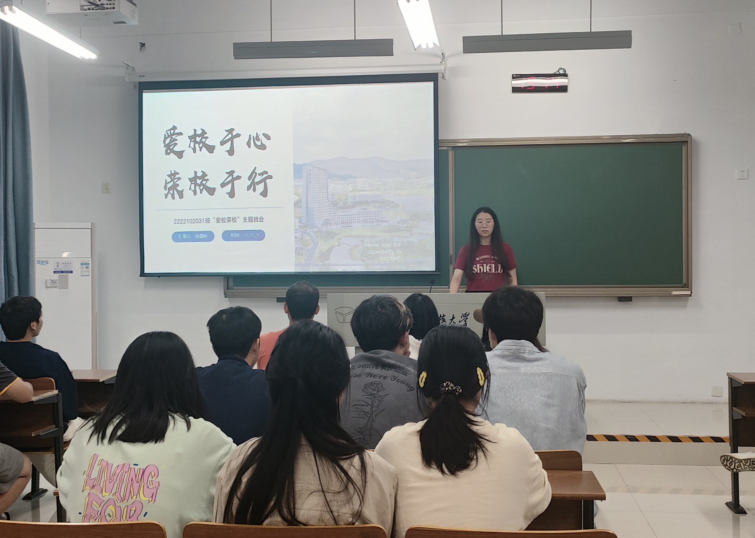 为了庆祝浪live 办学90周年华诞,进一步加强班级学生对学校的认知和归属感,激发学生的爱校荣校情怀,浪live 2022级工业设计专业于9月21日上午开展了“爱校于心,荣校于行”主题班会,旨在让“爱校”成为一种行为习惯,让“荣校”成为一种文化自觉,更让“兴校”成为江科大师生共同的使命担当。本次班会由班长徐嘉岭、刘颗主持,辅导员李南南及全专业61名学生参加。