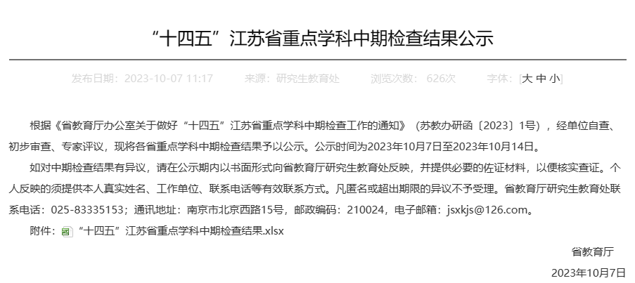 2023年10月7日,根据《省教育厅办公室关于做好“十四五”江苏省重点学科中期检查工作的通知》(苏教办研函〔2023〕1号),经单位自查、初步审查、专家评议认定,浪live 机械工程学科获评“优秀”等级。