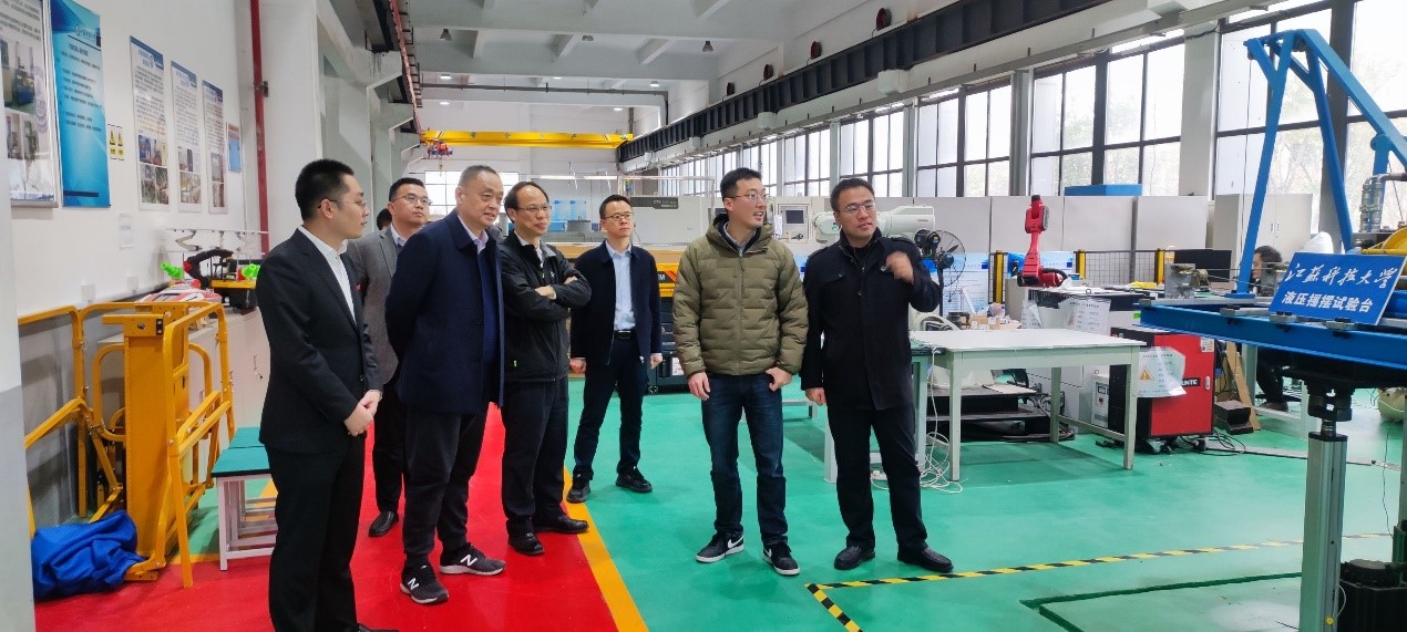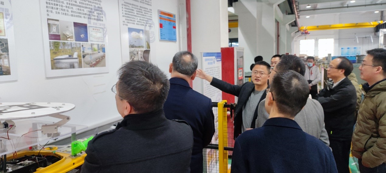 专家组在听取汇报后,前往专业实验室进行参观,张建向与会专家介绍了实验室的平台建设情况和研究特色,专家们对学院实验室建设成果表示了高度评价,对智能制造实训平台和柔性制造产线的创新性和实用性表示了肯定。