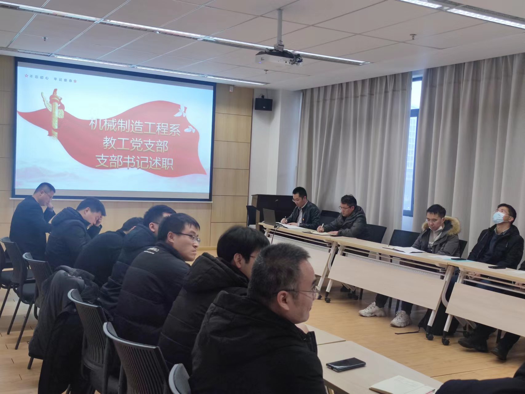 12名党支部书记紧扣校党委组织部考核指标体系,从组织设置、推进中心工作、党员教育管理、全面从严治党和组织生活制度等方面将支部这一年的工作成果进行了总结,并从党建创新,不足之处和今后工作打算等几个方面进行述职,支部党员对党支部书记履职情况以及支部建设存在的问题进行了交流。