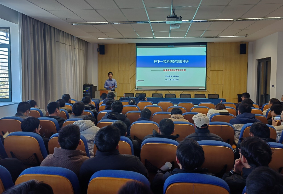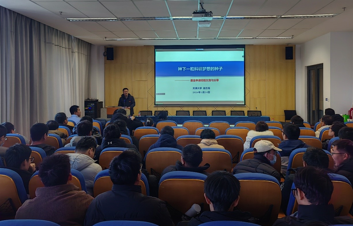 2024年1月24日,天津大学徐万海教授应邀以“种下一颗科研梦想的种子——国家自然基金申请经验分享”为主题做了精彩的讲座。浪live 院长张建主持本次讲座,浪live 青年教师、部分校内、外同行参加讲座。