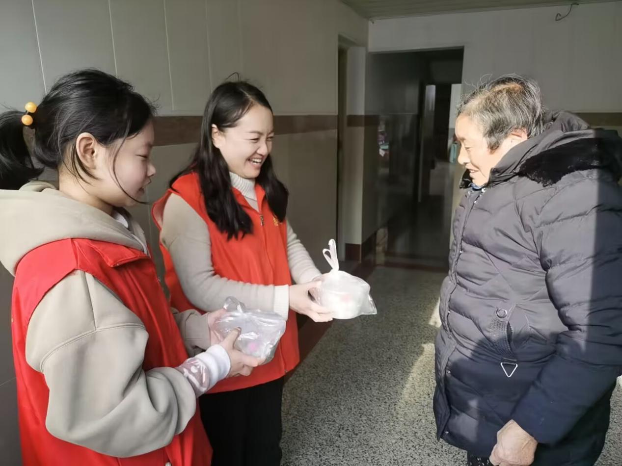 1月30日,实践团成员董凯玲在江苏省常州市武进区为残疾人家属送上亲手制作的团子,让他们感受到社会的关怀与爱护。