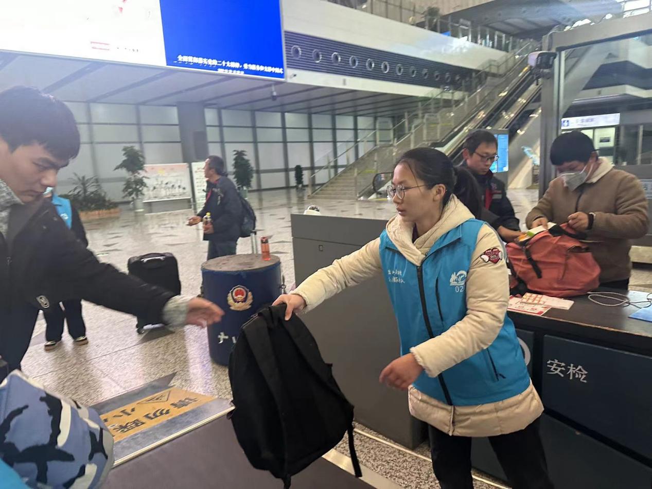 1月20日,实践团成员蔡帅楠在盐城高铁站进行行李帮扶等帮扶活动。在帮扶过程中,志愿者们需要密切配合,分工合作,才能确保每一个行李都能够安全、及时地到达目的地。这种默契和协作精神不仅仅在志愿活动中很重要,在人民的日常生活和工作中也同样适用。