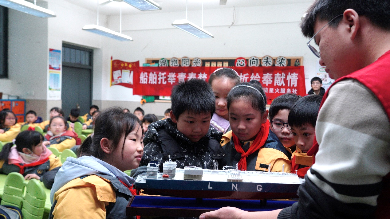 图为志愿者向小朋友们讲解船舶知识。马灿坤 摄