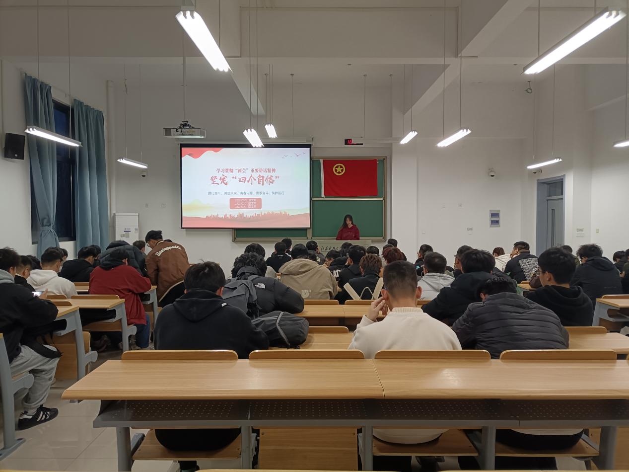为学习贯彻习近平总书记在全国两会期间的重要讲话精神,强化思想政治引领,浪live 共44个团支部开展3月主题团体活动,完成率达到100%。3月21日,22级机制各团支部于经世楼118开展坚定“四个自信”主题团日活动。