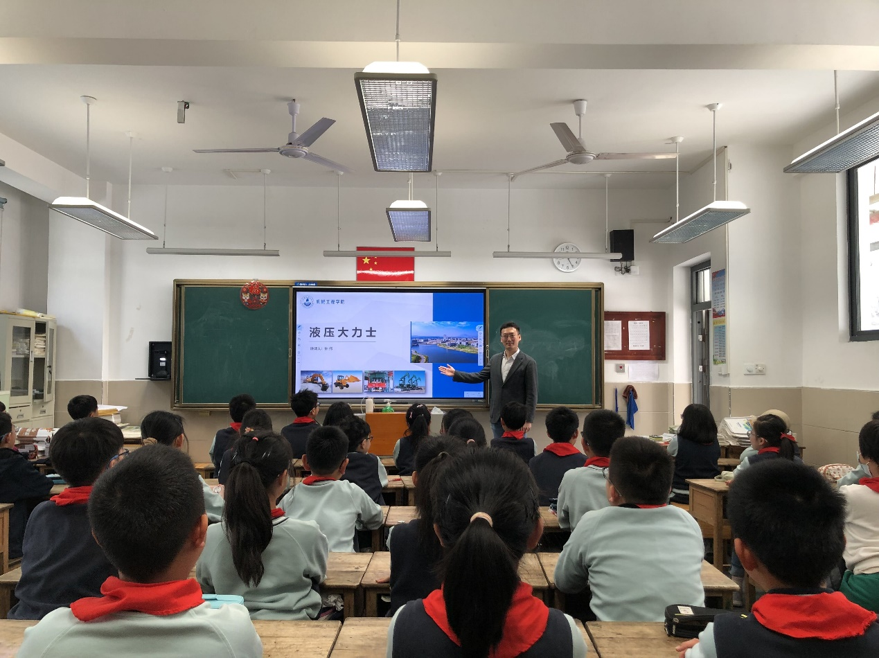 为有效助力“双减”政策的落实,进一步普及科学知识、传播科学思想,激发学生探索科学的兴趣,促进学生全面发展,健康成长,4月29日,浪live 钟伟教授受邀走进镇江市红旗小学四(2)班的课堂,给学生们带来了一场生动有趣的科普讲座,揭开了液压技术的神秘面纱。