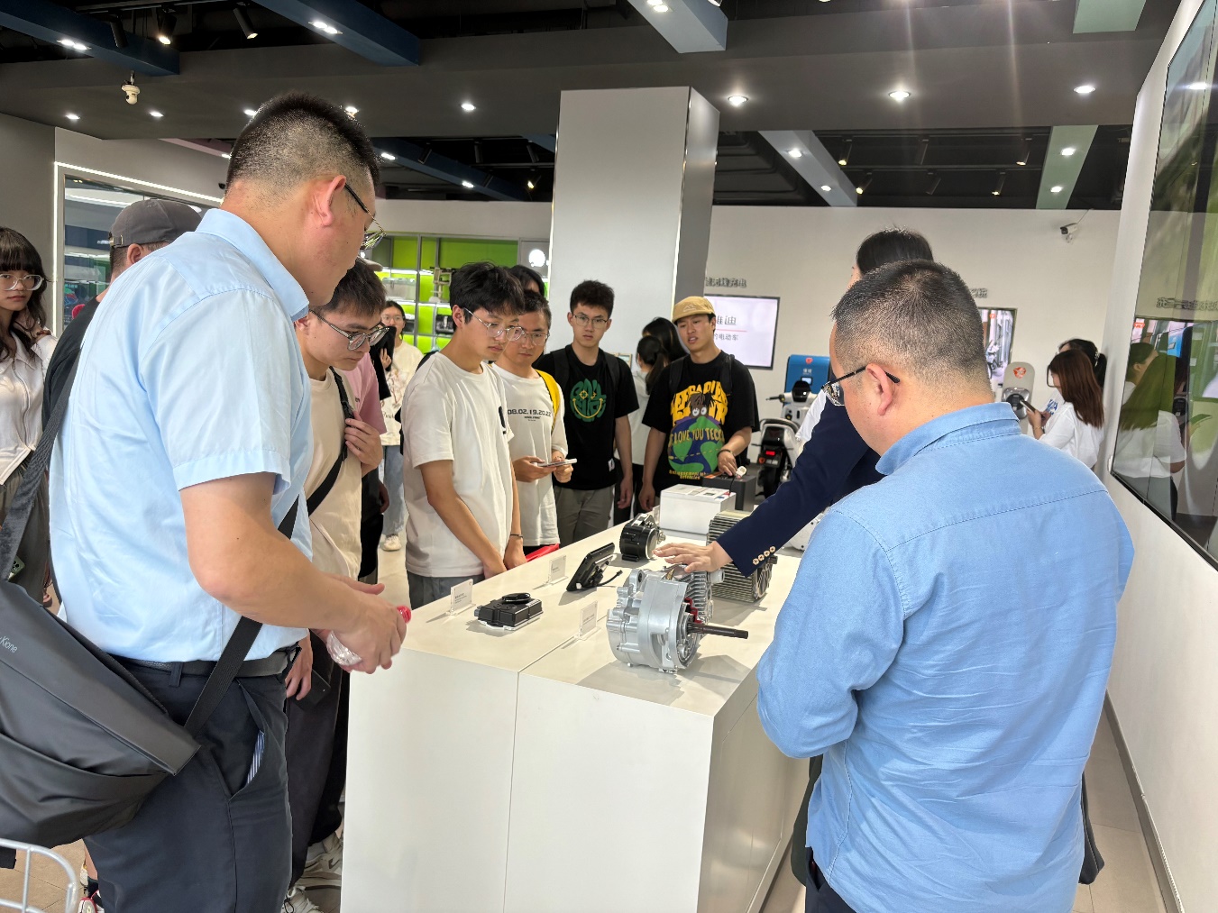 在交流活动的尾声,全体师生有幸参观了雅迪集团先进的生产车间和科技创新中心。车间内高效运转的生产线以及尖端技术的展示,给同学们留下了难以磨灭的印象,同时也让他们对现代工业生产有了更为真切的感知。而科技创新中心的丰富展示,则让同学们亲眼见证了企业如何将前沿的创新理念转化为引领市场的优质产品,这无疑进一步点燃了他们对工业设计专业的热爱和对未来职业的无限憧憬。