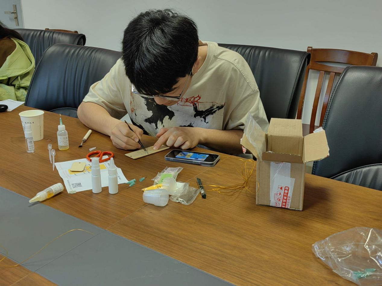 手工制作开始,同学们跃跃欲试,拿起手中的书签便准备“大展宏图”,但不久后就被制作掐丝珐琅所需的注意力和掐丝珐琅本身的精细程度所折服,并表示“仅仅是个简单的书签,一整个下午都不一定做的出来,更别提那些工业品了。”