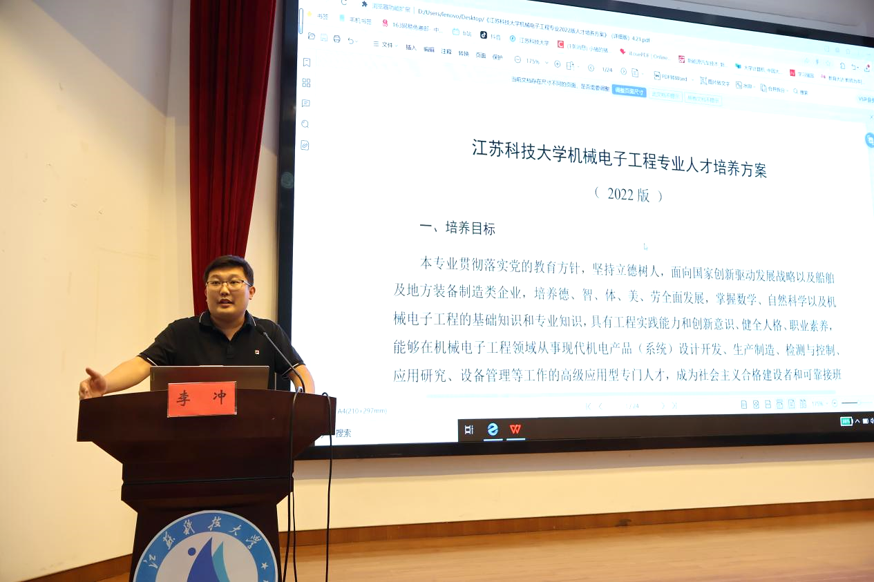 紧接着,李冲老师带领同学们对机械电子工程专业的人才培养方案进行了完整学习。李老师指出,机电专业更加侧重机械电子工程领域的产品(系统)设计开发和检测控制等,其课程设置在前4个学期与机制专业相似,从大三的专业课开始体现出差异,如微机原理与接口技术,液压与气压转动,机电传动及电气控制等课程。