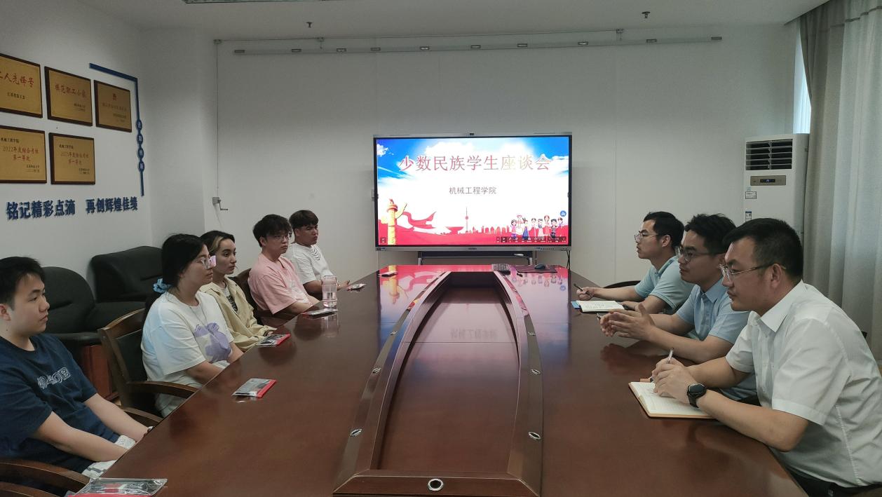 为铸牢中华民族共同体意识,关心关爱学院少数民族学生,增进各民族同学之间的友谊和交流,6月14日,机械工程学院召开少数民族学生代表座谈会。学院团委书记李文达、辅导员蒋达、尹子琪和少数民族学生代表参加会议。
