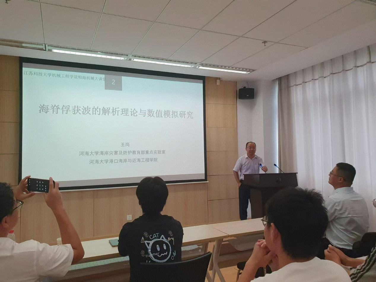 2024年8月14日,河海大学王岗教授应邀做客浪live 船海机械大讲堂,在浪live 445会议室做了题为《海脊俘获波的解析理论与数值模拟研究》的线上、线下混合讲座。浪live 院长张建教授主持本次讲座,院内外青年教师、研究生参加本次讲座。
