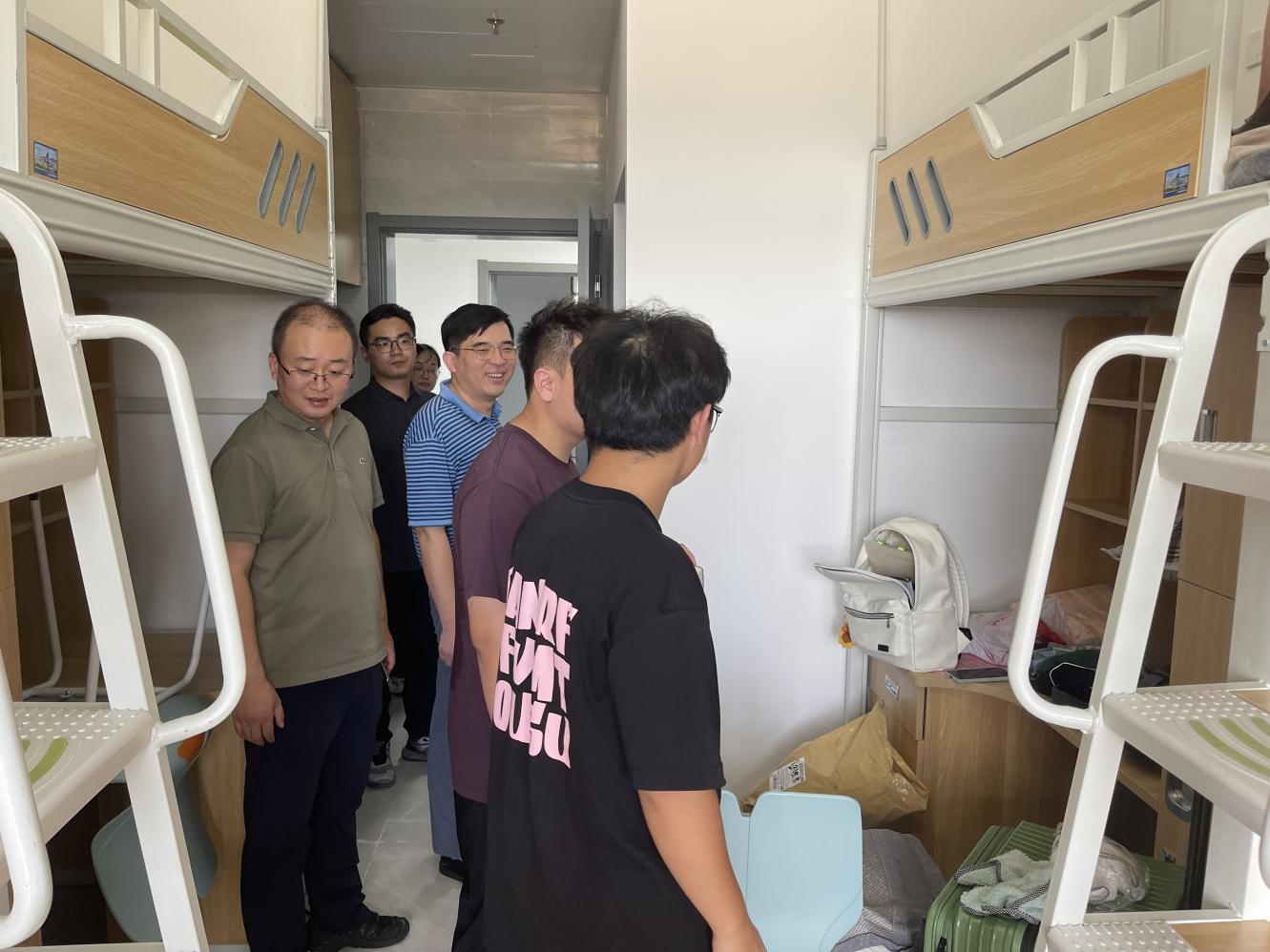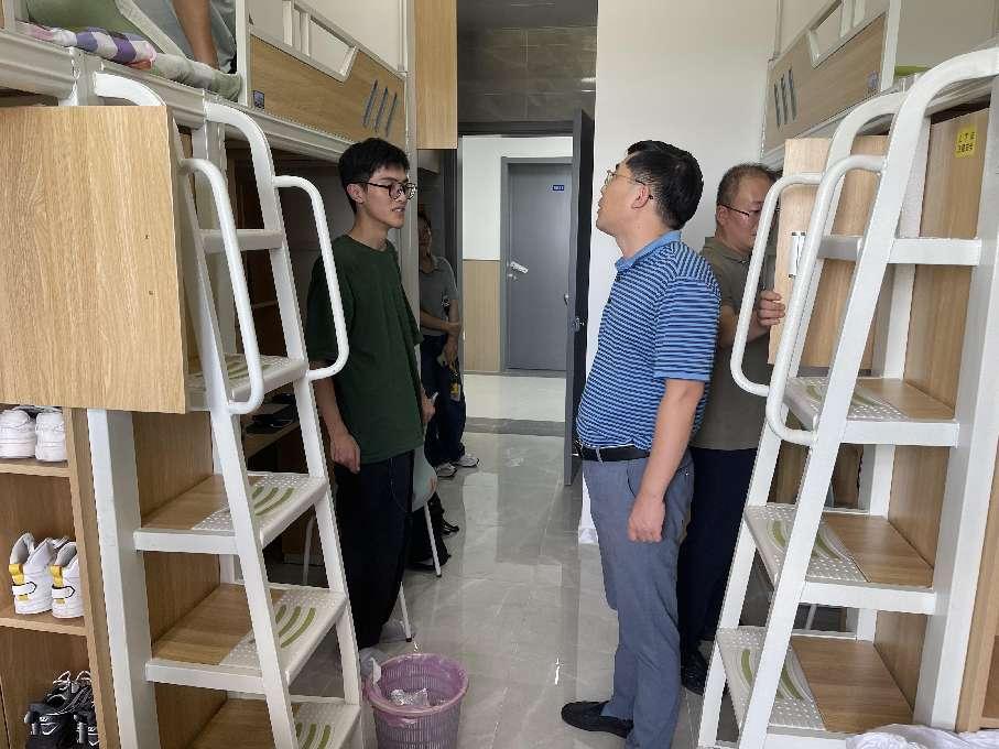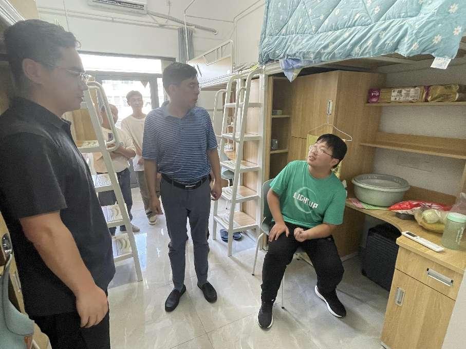 上午,领导们逐一走进新生宿舍。在宿舍内,翟纯纯书记和谭海波副书记细心询问了新生们的入学报到手续办理情况,从报到流程的便捷性到宿舍设施的完善度,事无巨细,一一了解并听取反馈。翟书记特别强调了学院对于新生适应新环境的重视,他强调:“学院深知初来乍到的你们或许会有诸多不适应,但请放心,学院就是你们的坚强后盾。无论是学习上的困惑还是生活中的难题,我们都将全力以赴,为你们提供最坚实的支持。”