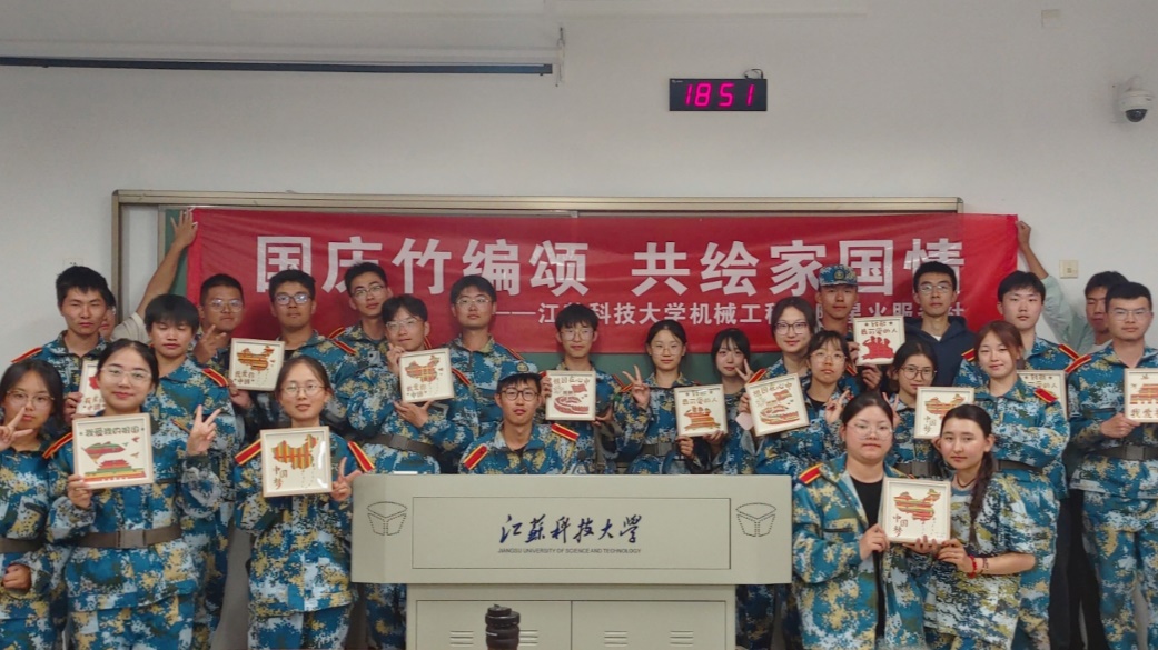 活动伊始,志愿者通过PPT讲解竹编历史文化。志愿者充满激情地向大家详细介绍竹编的悠久历史,大家纷纷表示领略到竹编艺术的深厚底蕴。接着,志愿者们展示了各种竹编的技艺手法,复杂而精妙的编织作品吸引了同学们的兴趣,也为同学们对于竹编创作充满了期待与热情。在编竹环节,他们或专注地在纸上勾勒出竹子的挺拔姿态,或精心地挑选竹条进行编织,每一个动作都饱含着对艺术的热爱和对国庆的美好祝福。同学们充分发挥自己的想象力和创造力,编绘出形态各异、富有神韵的竹子画作。有的展现出对教官的深深的感恩,有的则表达出对生活的热爱和对祖国繁荣的赞颂。同学们在志愿者的指导下,学习各种编织技巧,绘制了一件件精美的画作,每一件作品都凝聚着同学们的心血和智慧。