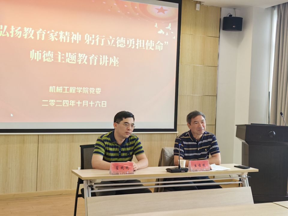为进一步加强学院师德师风建设,弘扬教育家精神,浪live 党委于10月16日下午组织开展“大力弘扬教育家精神 躬行立德勇担使命”师德师风主题教育活动,并邀请校党务专员生佳根教授做师德师风专题讲座,学院近三年入职的教师参会,会议由学院党委书记翟纯纯主持。