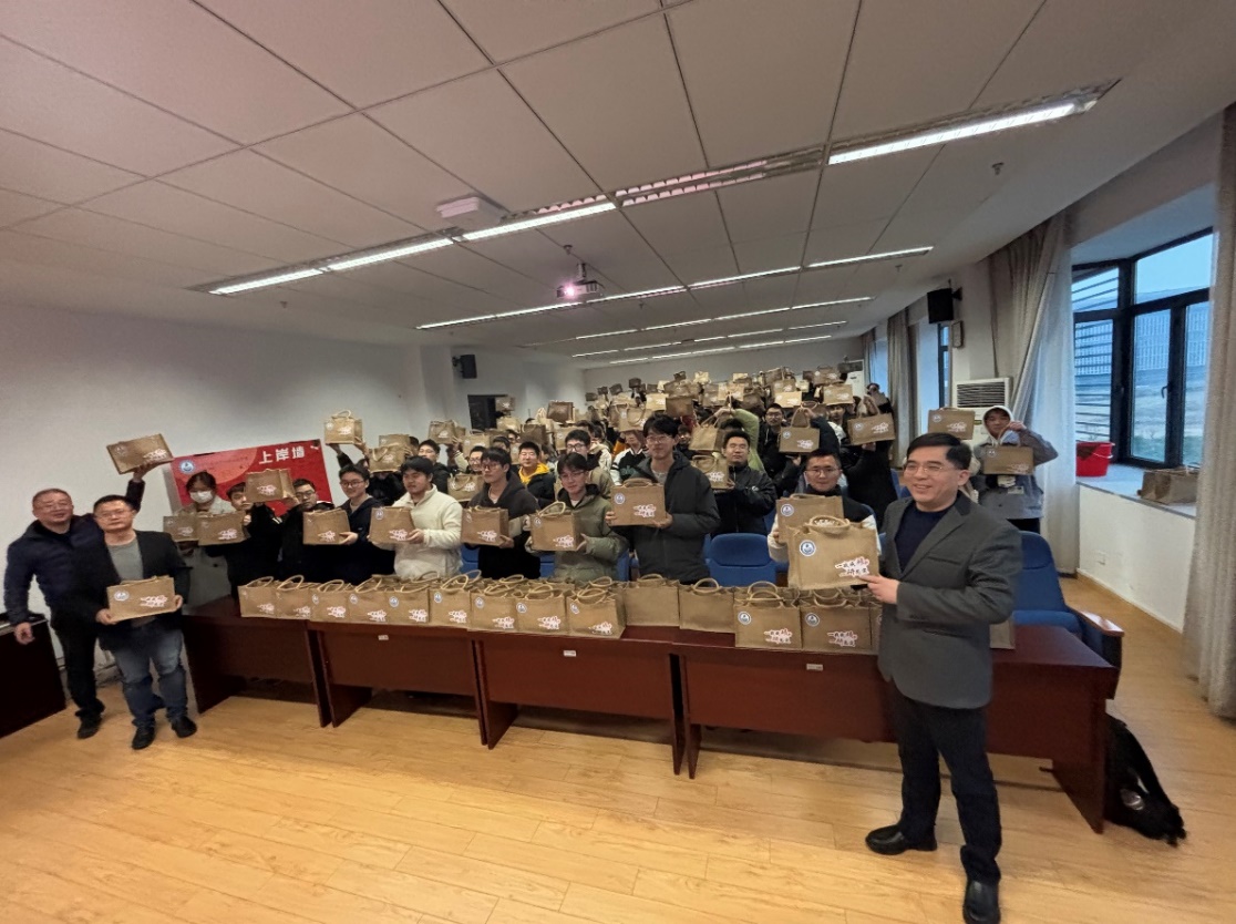 随后,学院领导为大家发放了蕴含深切关怀和美好祝愿的“考研大礼包”。其中包含定制包袋-“包”你上岸,得力文具-落“笔”生花,“书”写未来,定制可乐-手握星辉、执笔为剑,巧克力-“巧”妙应对,无懈“克”击,薯愿薯片-“署”光在前,得偿所“愿”,脐橙-“橙”风破浪,心想事“橙”。