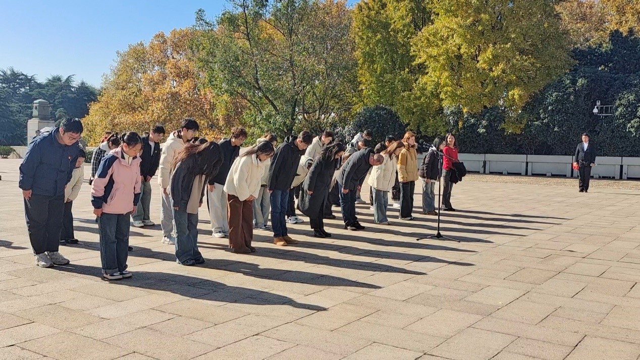 图为党员师生向雨花台烈士行鞠躬礼 王莹摄