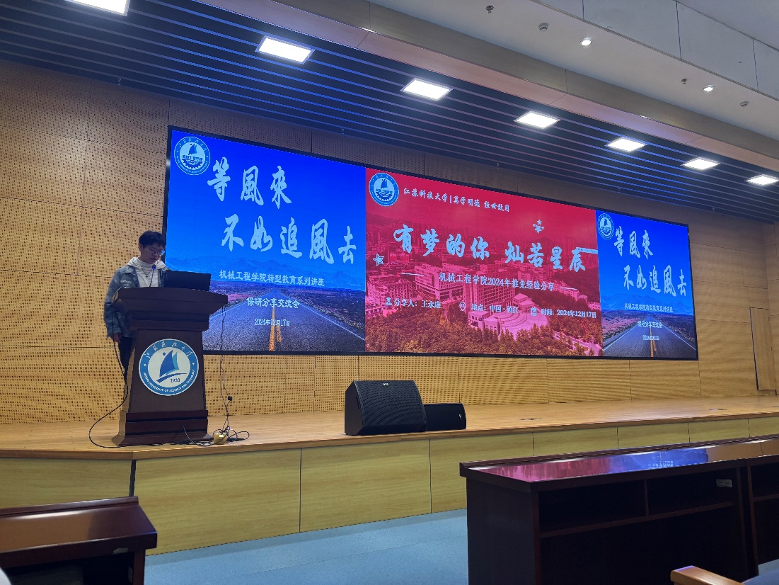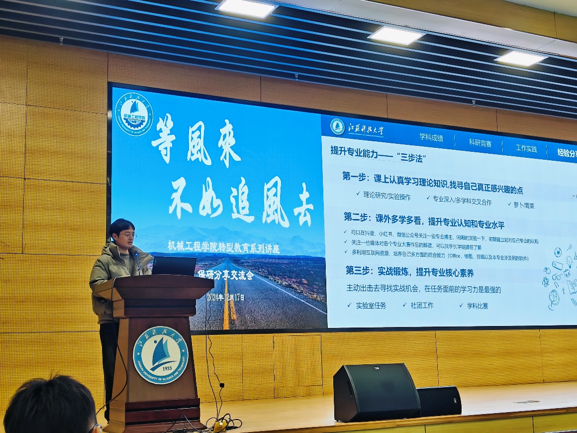来自21级智能制造工程专业的王永康重点从预推免需要掌握的技能技巧、保研心态方面做了分享,他鼓励学弟学妹积极参加国家级赛事并勉励他们“越努力越幸运”。