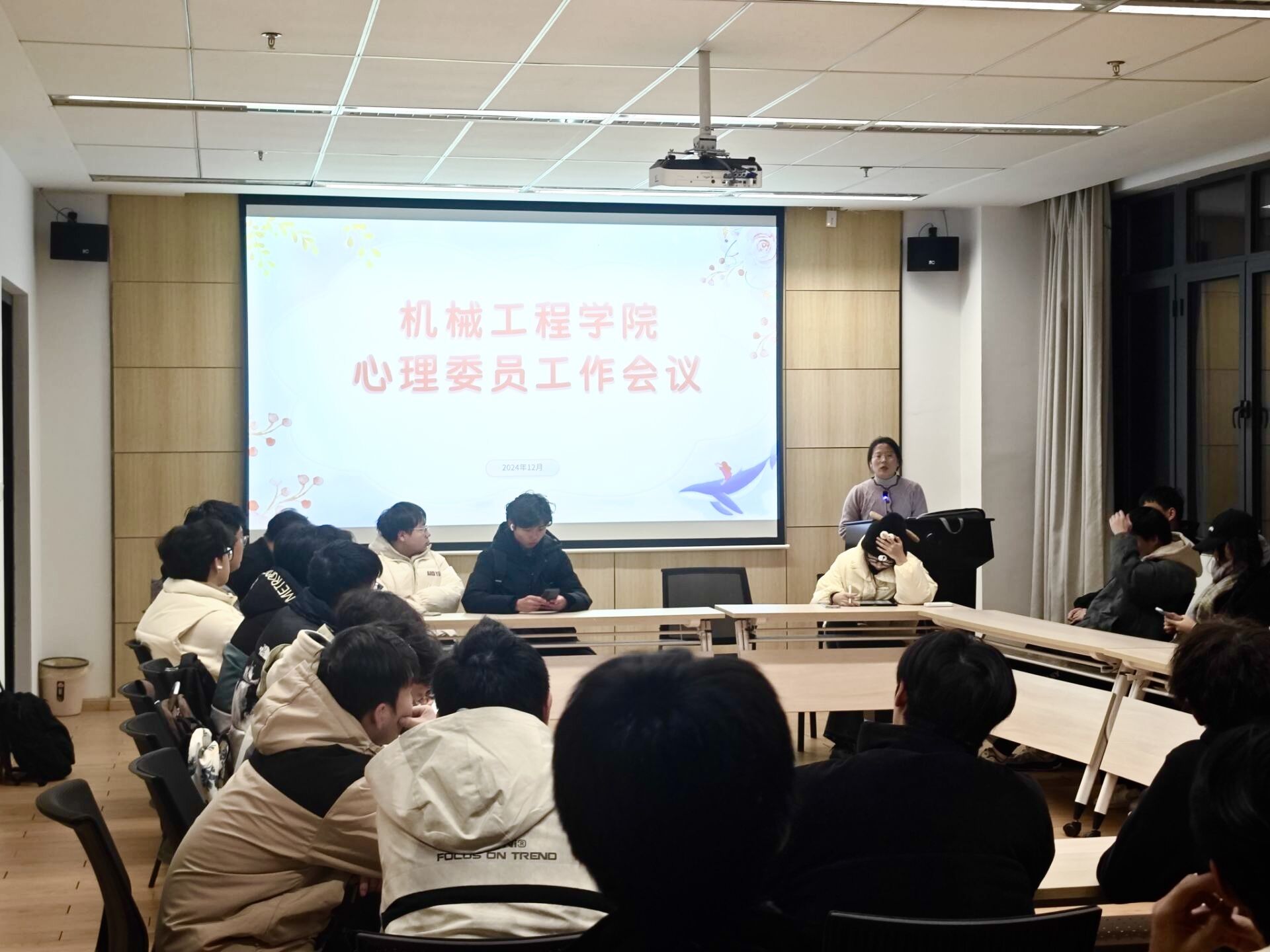 会上,辅导员老师首先向各班心理委员介绍了学院2024年以来心理健康教育工作的总体情况,梳理了各项工作要点,对2024年的工作成效进行了总结和反思。随后,对学院下一步的心理健康教育工作进行了详细的布置,包括心理健康教育主题活动、心理健康教育微课大赛、心理情景剧大赛等等。之后,各班心理委员对班级同学整体情况进行了汇报和交流。最后,朱老师强调,心理委员作为学院心理健康教育工作的重要力量,要切实发挥桥梁和纽带作用,积极关注身边同学的心理状态,及时发现并上报问题,积极地进行有效干预,为构建平安、和谐的校园环境贡献力量。