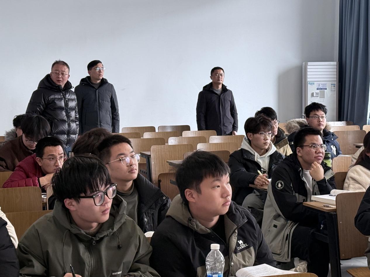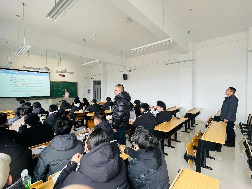 2月21日上午,学院党委书记翟纯纯、院长张建、党委副书记谭海波率深入教学一线开展新学期学风调研,团委书记李文达及辅导员代表陪同调研。实地了解教师授课、学生出勤、课堂秩序及教学保障等情况,为新学期教育教学和学风建设的质量提升把脉定向。