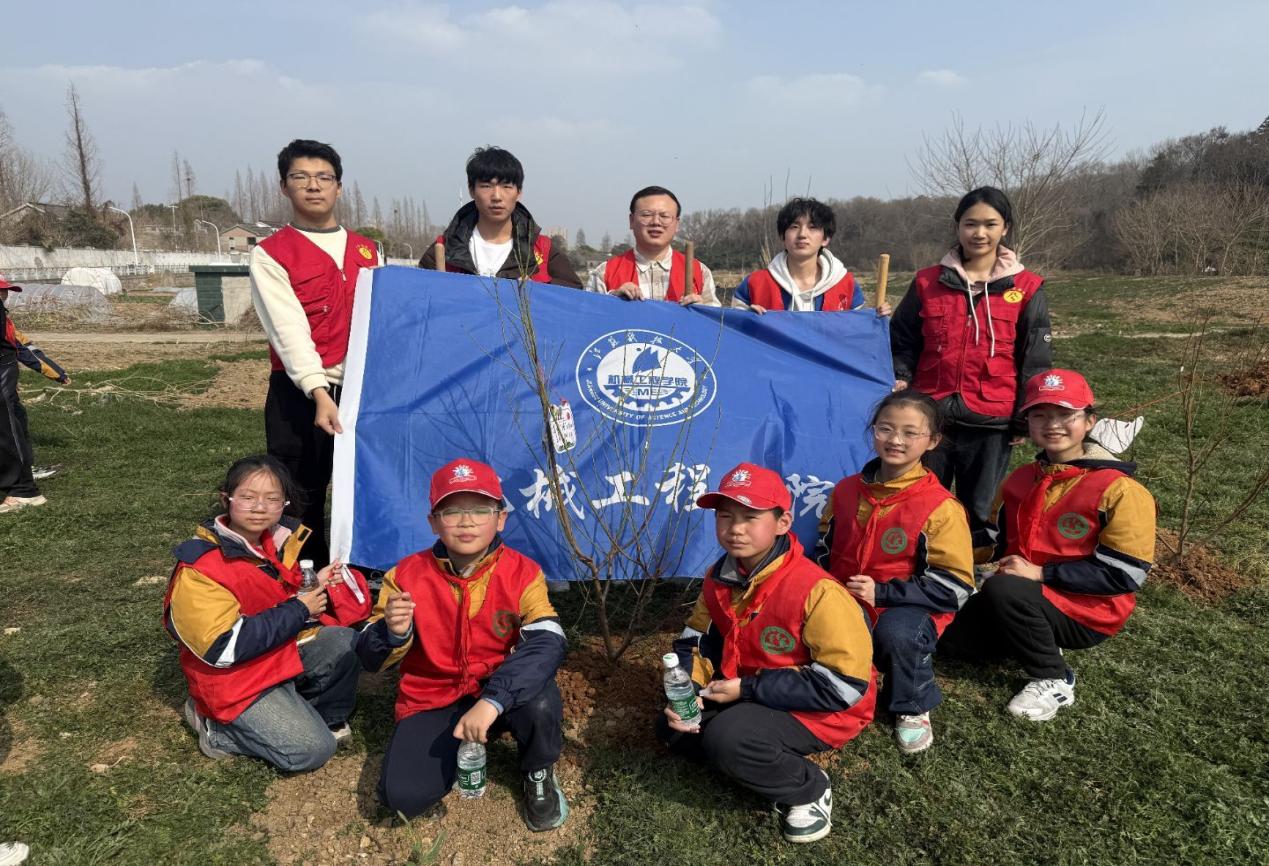 活动伊始,志愿者以一场深情并茂的宣讲开场,深入阐释雷锋精神的时代内涵,将环保知识与植树技巧融入生动故事,引导领悟助人为乐与守护自然的使命。在场成员凝神倾听,目光中跃动着对使命的领悟——雷锋精神不仅是助人为乐,更是对脚下土地的长情守护。随后,在浪live 博士生党员汤寅辉的带领下,浪live 星火服务社成员携手少年儿童共同开展义务植树实践活动。活动中,汤寅辉与孩子们协作完成扶苗培土、灌溉浇水等环节,通过寓教于乐的方式将雷锋精神与生态保护理念相结合,生动诠释了无私奉献、团结协作的志愿精神,充分展现了青年党员在社会服务中挺膺担当的先锋形象。种植结束后,小朋友们为一株株稚嫩的树苗悉心系上“环保小卫士卡”,卡片上工整地书写着对未来的期许。活动现场,铁锹入土声、水珠滴落声与少年们的笑语交织,展现出一幅生动的劳动画卷,一锹土,种下的是生态文明的希望;一桶水,浇灌的是青春担当的沃土。活动尾声,少年们驻足凝望亲手栽种的树苗,仿佛已见未来枝繁叶茂、碧波连天的景象。