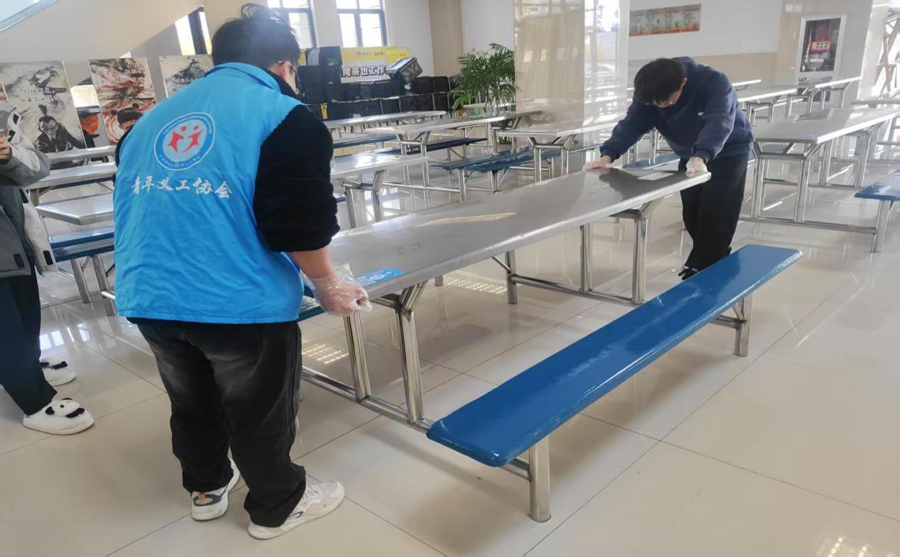 小小行动,大大改变。 在活动中,同学们分工明确,各司其职。第一组志愿者负责擦桌子,他们仔细清洁每一张餐桌,确保用餐环境的整洁卫生。第二组志愿者则负责拖地,他们用勤劳的双手,让食堂的地面焕发出洁净的光彩。第三组志愿者的任务是收盘子,他们协助食堂工作人员,及时清理餐桌上的餐具,保持餐桌的整洁有序。虽然只是些微不足的小事,但他们的行动却如春风般温暖了整个食堂。同学们纷纷表示,这样的公益活动不仅让食堂变得更加整洁有序,更让他们感受到了来自同龄人的关爱与温暖。