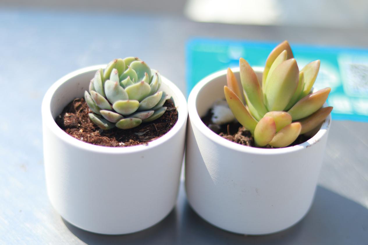 活动现场,摆放着各式各样憨态可掬的多肉植物,肥厚的叶片饱满多汁,仿佛藏着整个春天的生机。旁边整齐排列的素色花盆,以及琳琅满目的DIY材料,如颜料、画笔、彩色贴纸、小装饰等,瞬间点燃了同学们的创作热情。