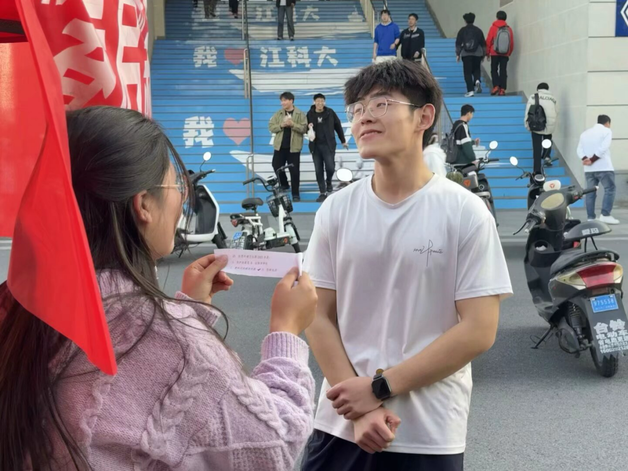 知识闯关赛也收获了许多同学的热情,题目内容不仅涉及自然知识,生活常识,还有校训历史,节气文化等。同学们或沉着思考,或小声讨论,展现出了良好的知识素养和积极的求知态度。还有不少同学不为奖品,只为一试;更有同学“反向提问”,拿着题目考起了在场的团委的工作人员,现场一片欢声笑语。不少同学表示,这种寓教于乐的活动形式十分新颖,不仅让他们学到了新知识,还在轻松愉快的氛围中结交了新朋友。