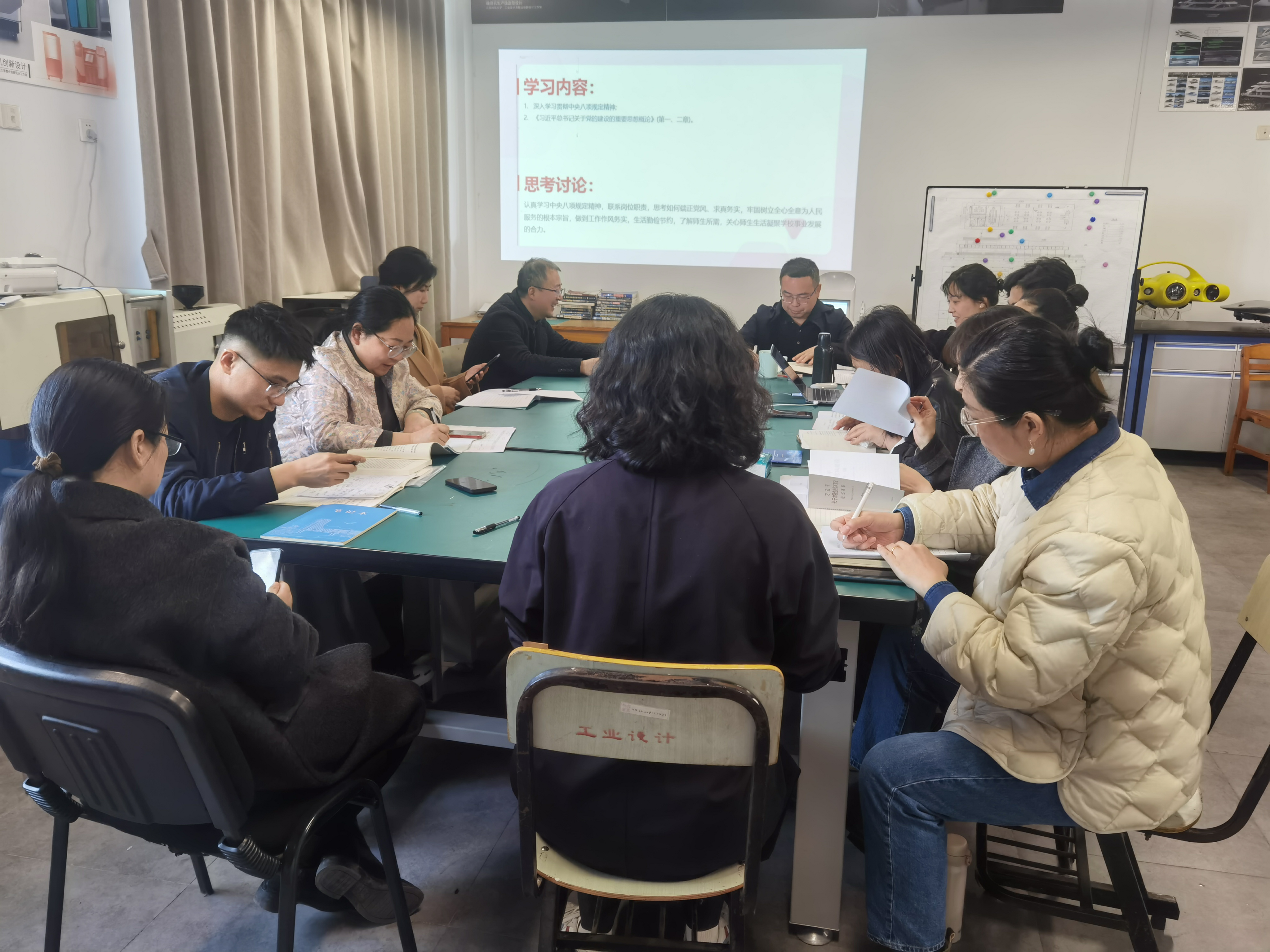 全体师生党员集中学习《中央八项规定》及《中央八项规定实施细则》,深入学习贯彻中央八项规定精神和《习近平总书记关于党的建设的重要思想概论》(第一、二章),联系岗位职责,思考如何端正党风、求真务实,牢固树立全心全意为人民服务的根本宗旨,做到工作作风务实,生活勤俭节约,了解师生所需,关心师生生活,凝聚学校事业发展的合力。