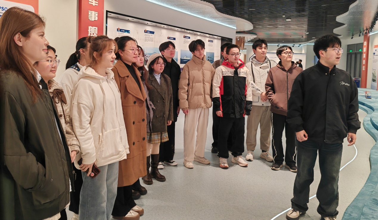 步入校史馆,同学们在讲解员的引导下,通过珍贵的历史照片、文献资料、船舶模型等展品,全面了解了学校发展的辉煌历程。校史馆内,从新中国第一所造船中专的创建记忆,到参与国家重大科研项目的创新突破,再到“中国造船工程师摇篮”的使命担当,每一段故事都让同学们感受到学校与时代同频共振的奋斗足迹。