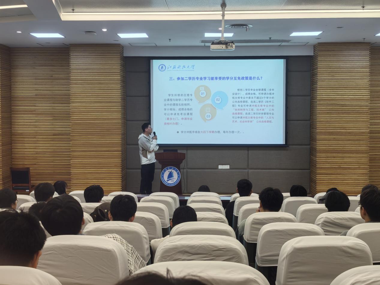 宣讲中,程老师从多方面剖析助二学历优势,点明其为职场“敲门砖”。从课程考试规划、学分互免政策,到报考条件、学习成本,程老师全程干货输出。现场同学专注记录,力求掌握 “学历升级”要点。这场讲解让二学历概念清晰化,助力新生锚定发展方向。