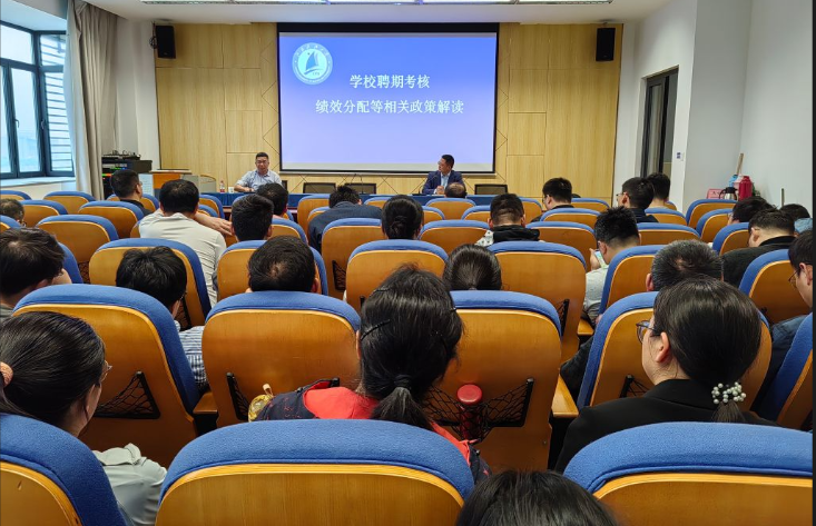 5月8日,浪live 召开全院大会,就教职工普遍关心的绩效分配、聘期考核等相关制度进行解读,与教职工开展面对面的沟通交流,校人事处处长朱志宇应邀主讲,浪live 院长张建主持会议。