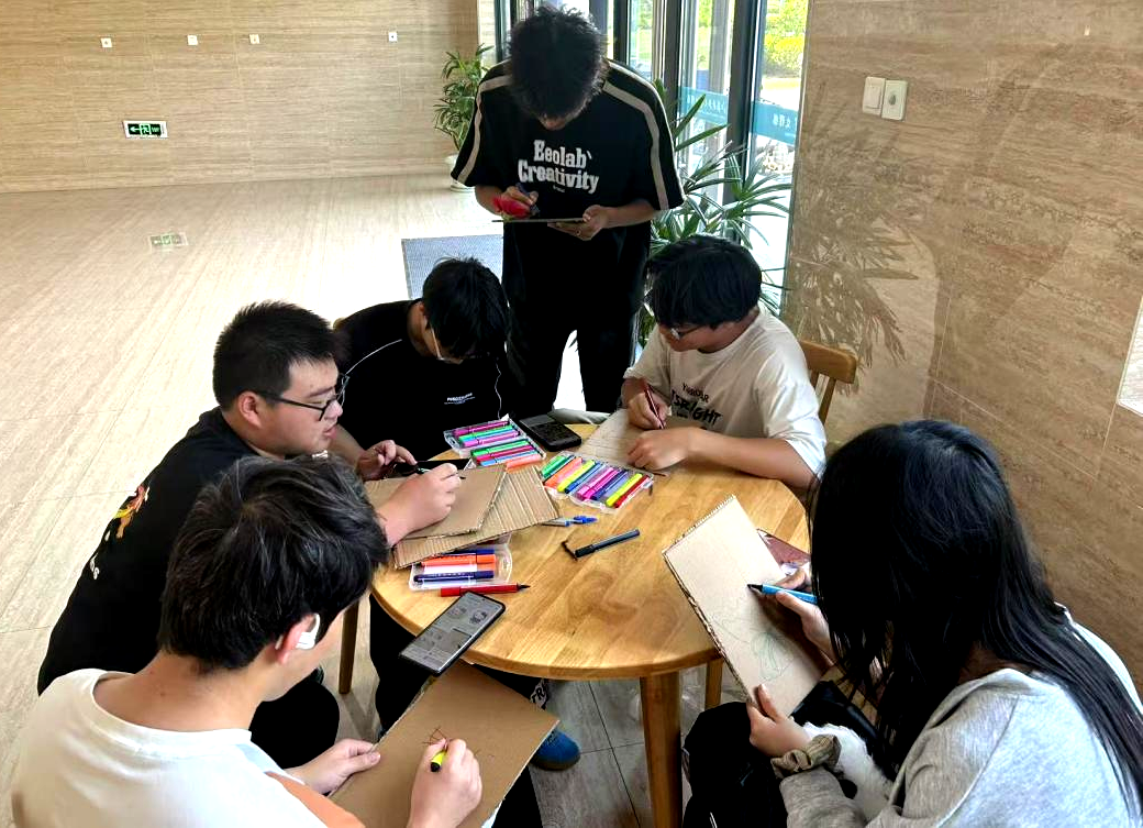 活动开始,大家用彩笔在废旧的快递纸板上勾勒出自己喜爱的图案,天马行空的想象力绘成了纸板上五彩斑斓的图案,有的同学绘制了充满童趣的卡通形象,有的同学绘制了充满设计的花瓶,一笔一画间体现着同学们对细腻生活的观察与热爱。