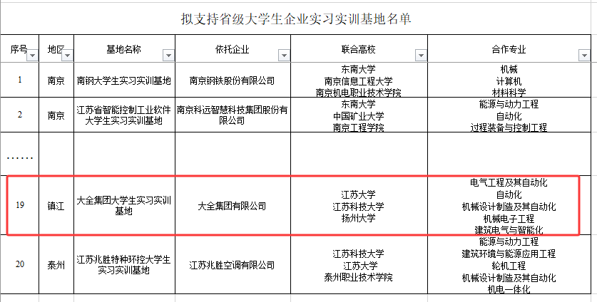近日,江苏省工信厅公布了省级大学生企业实习实训基地拟支持名单,学院依托大全集团有限公司申报的“大全集团大学生实习实训基地”进入拟支持名单。