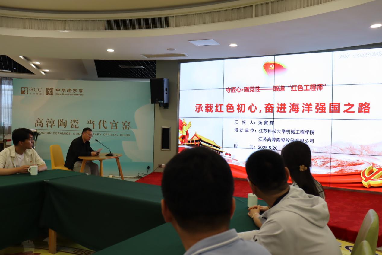 活动最后,校企双方围绕“工匠精神与科技创新”开展专题座谈。机械学院优秀研究生代表汤寅辉结合自身在深潜领域的研究,以“承载红色初心,奋进海洋强国之路”为题,分享科研攻关中精益求精的成长故事。高淳陶瓷技术负责人则从企业视角阐述传统行业转型升级对高技术人才的迫切需求,双方就产教融合、协同育人达成进一步合作意向。
