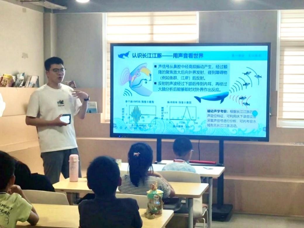 710日在江苏省镇江市镇江新区丁卯社区党群服务中心,志愿者们以认识江豚为主题展开了生动的讲解。他们通过精心准备的图片、视频资料向孩子介绍了江豚的外形特征、生活习性以及它们在生态系统中的重要作用。志愿者们用通俗易懂的语言,将江豚的故事娓娓道来,告诉孩子们江豚是长江里的微笑精灵,但如今它们的生存面临着诸多威胁,需要大家共同保护。孩子听得十分认真,不时举手提问,志愿者们都耐心地一一解答。