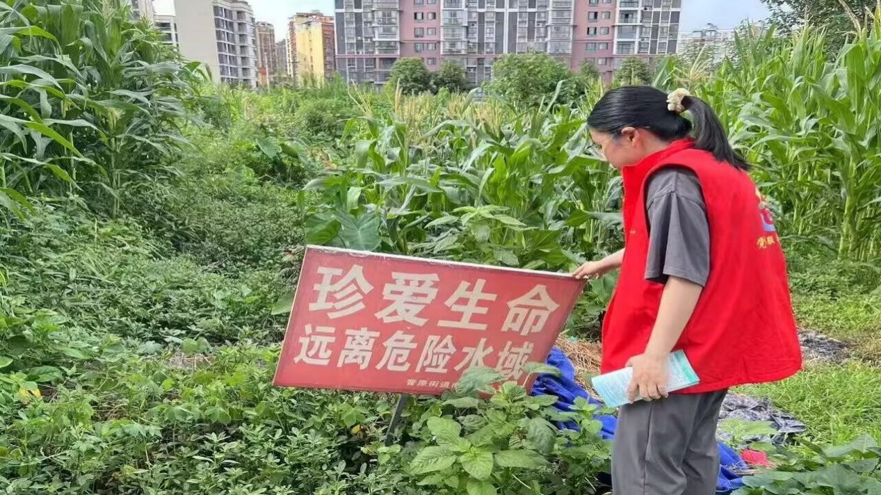 7月22日,熊奕棠同学主动承担起四川省成都市社区内及周边池塘、河道等危险水域的防溺水警示牌巡查工作。成员们顶着烈日仔细检查每一块警示牌的稳固性、清晰度,重点排查了不容易发现的被杂草遮掩的水域。同时,在巡查过程中积极向青少年及其家长进行防溺水安全宣讲,发放安全手册。本次实践不仅进一步提高村镇居民的安全防范意识,更为社区筑牢了一道坚实的暑期安全防线。